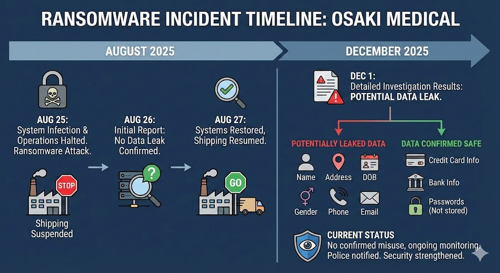 オオサキメディカル株式会社(本社:愛知県)は12月1日、同社の情報システムがランサムウェア攻撃を受けた…