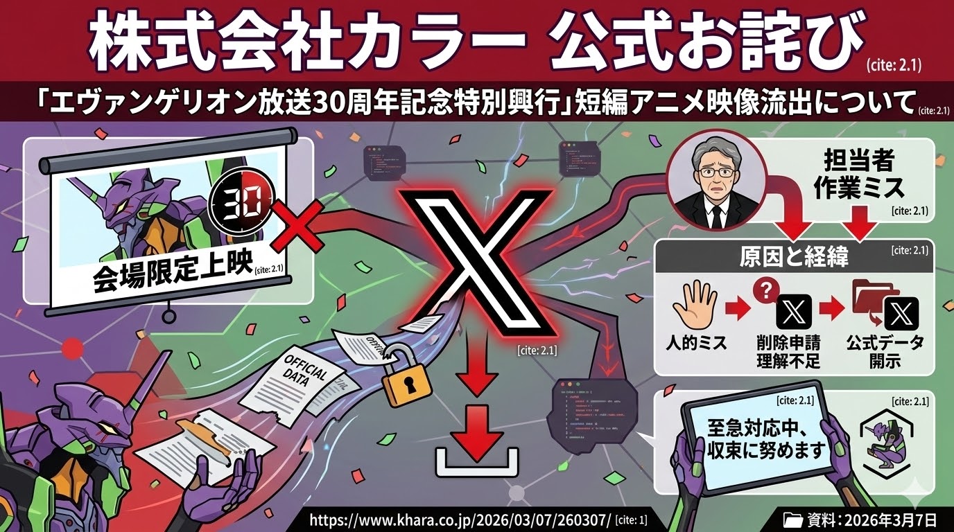 エヴァ30周年映像がSNS流出、カラーが謝罪。違法アップロード対策の手続き中に人的ミス