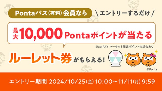 【Pontaパス会員】なら、au PAY マーケットで最大10,000ポイントがあたる!ルーレットキャンペーンを10月25日から開催