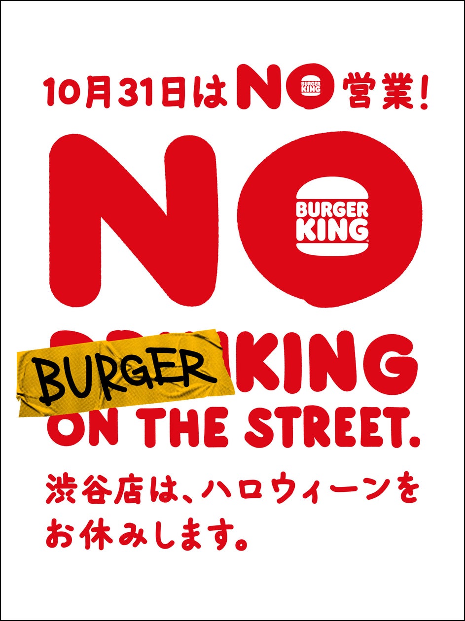 【臨時休業のお知らせ】バーガーキング渋谷センター街店は 10月31日(木)臨時休業いたします。NO営業! 渋谷店は、ハロウィーンをお休みします。