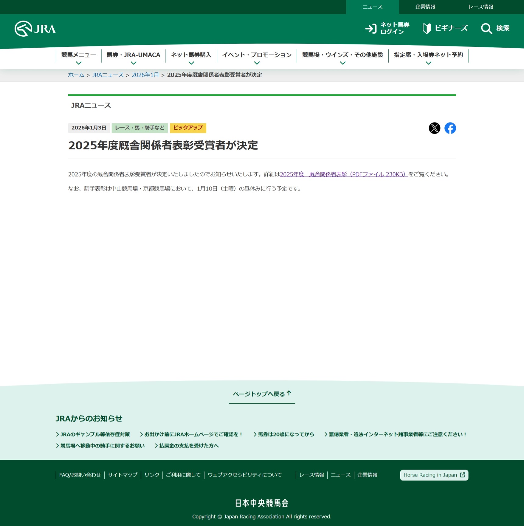 1月3日(土) JRA