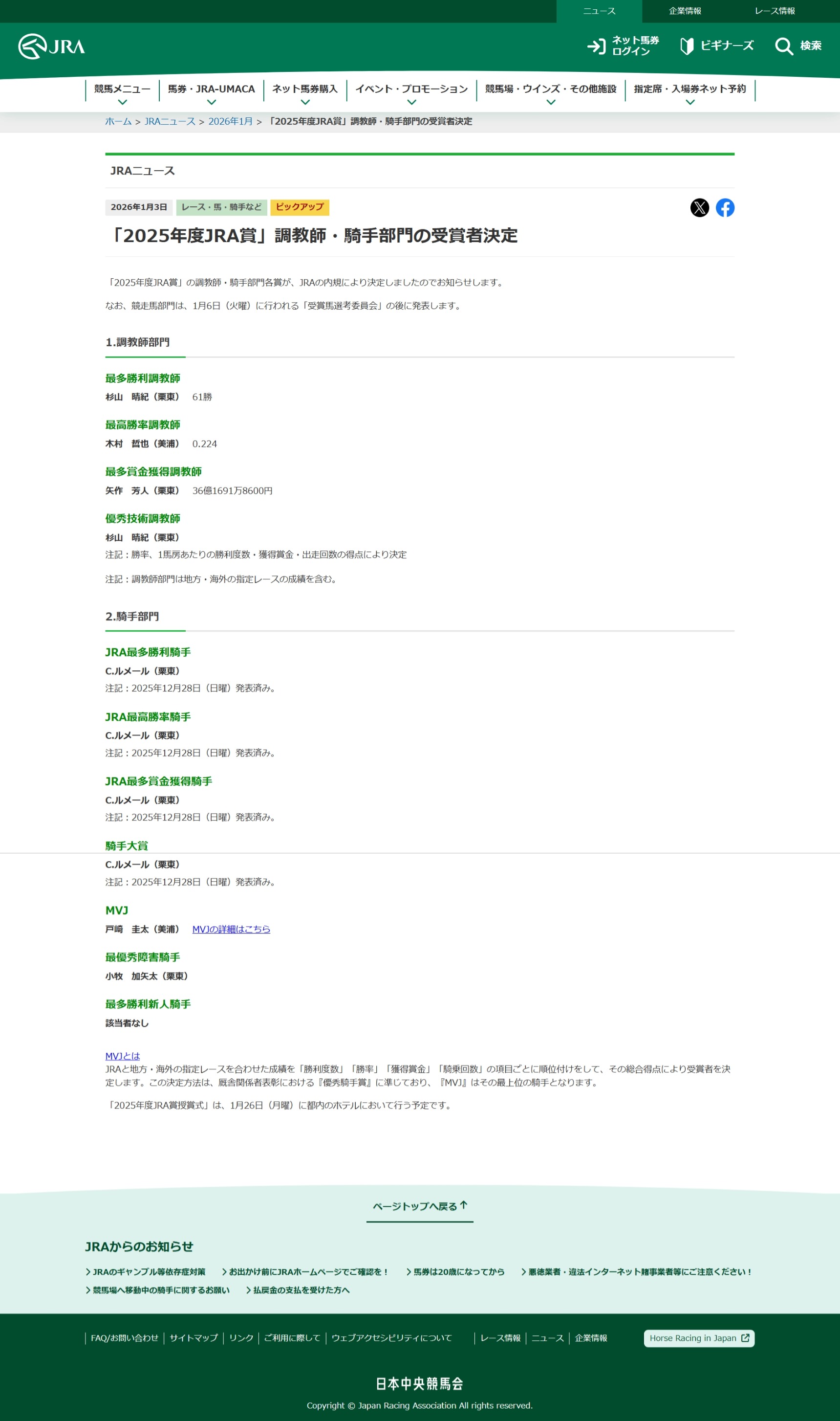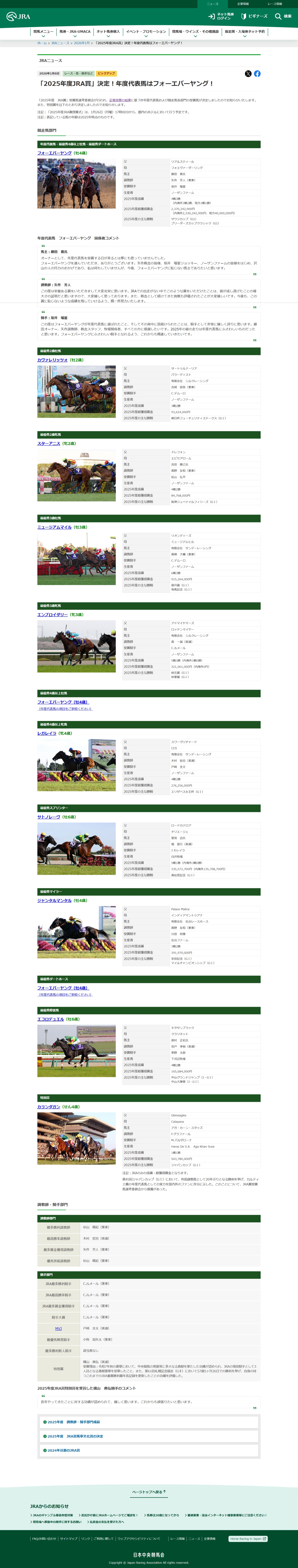 「2025年度JRA賞」決定!年度代表馬はフォーエバーヤング! JRA