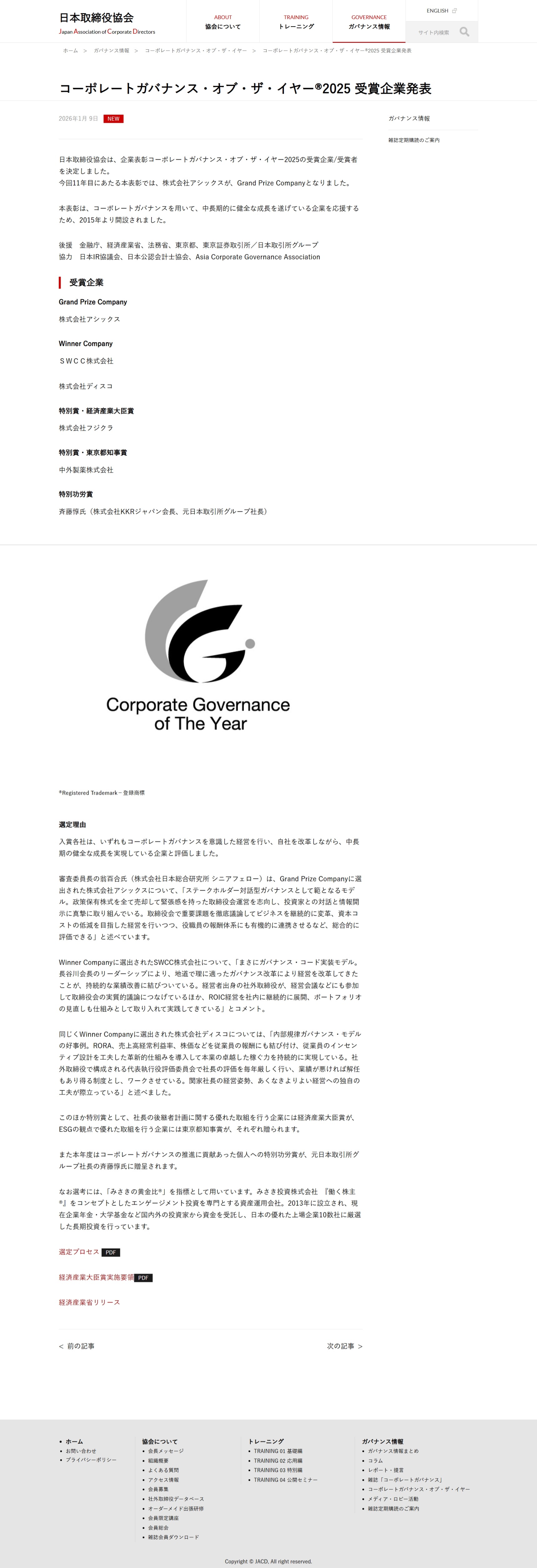 コーポレートガバナンス・オブ・ザ・イヤー(R)2025 受賞企業発表 – 日本取締役協会