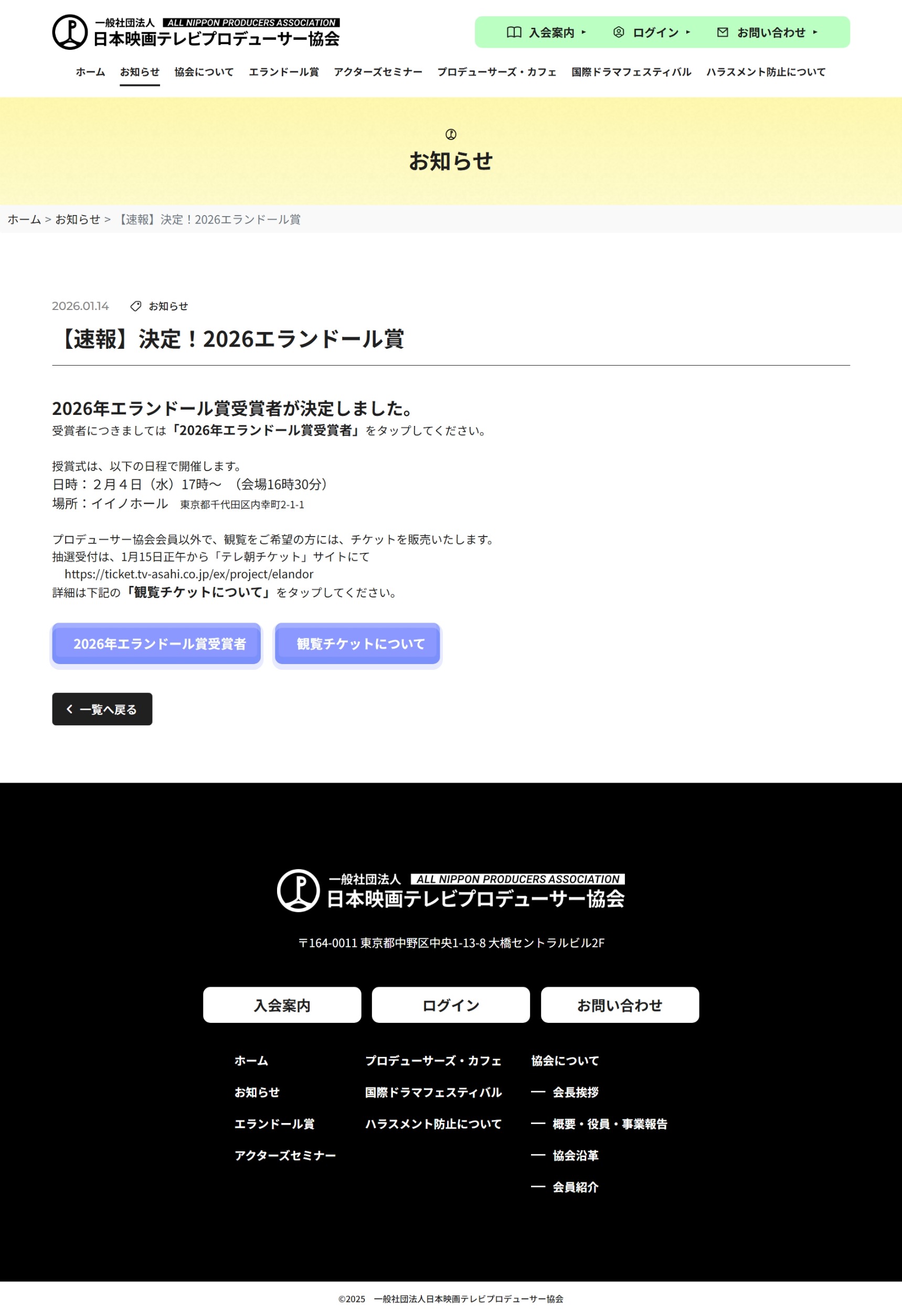 1月14日(水) 日本映画テレビプロデューサー協会