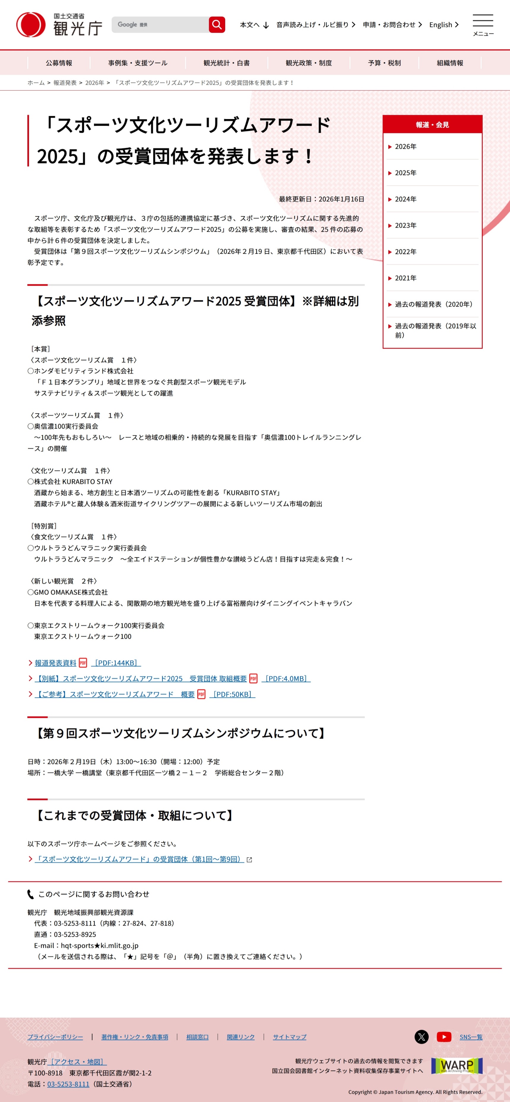 1月16日(金) 国土交通省観光庁