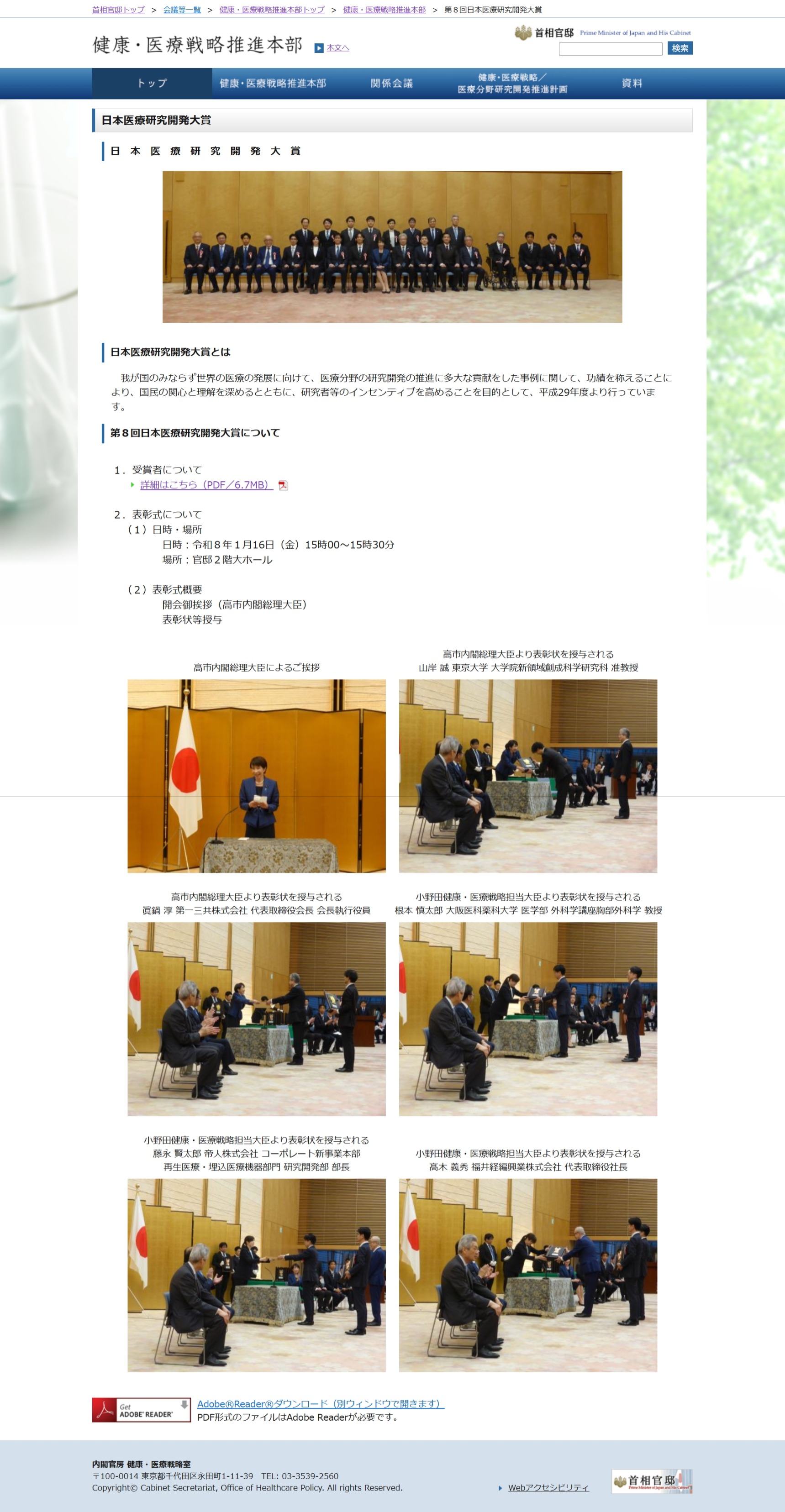 1月16日(金) 首相官邸(内閣府 健康・医療戦略推進事務局)
