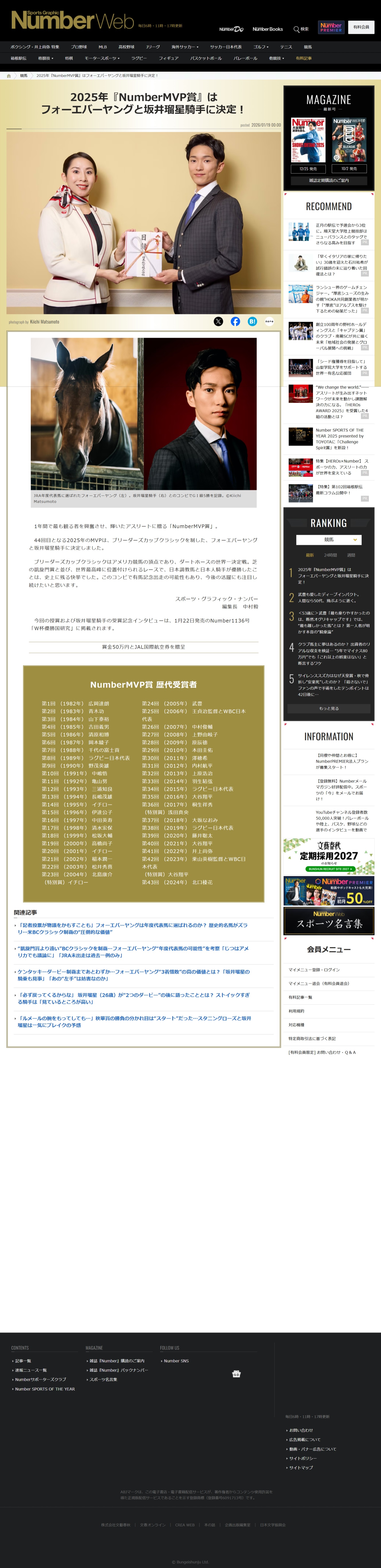 2025年『NumberMVP賞』はフォーエバーヤングと坂井瑠星騎手に決定! – 競馬 – Number Web – ナンバー