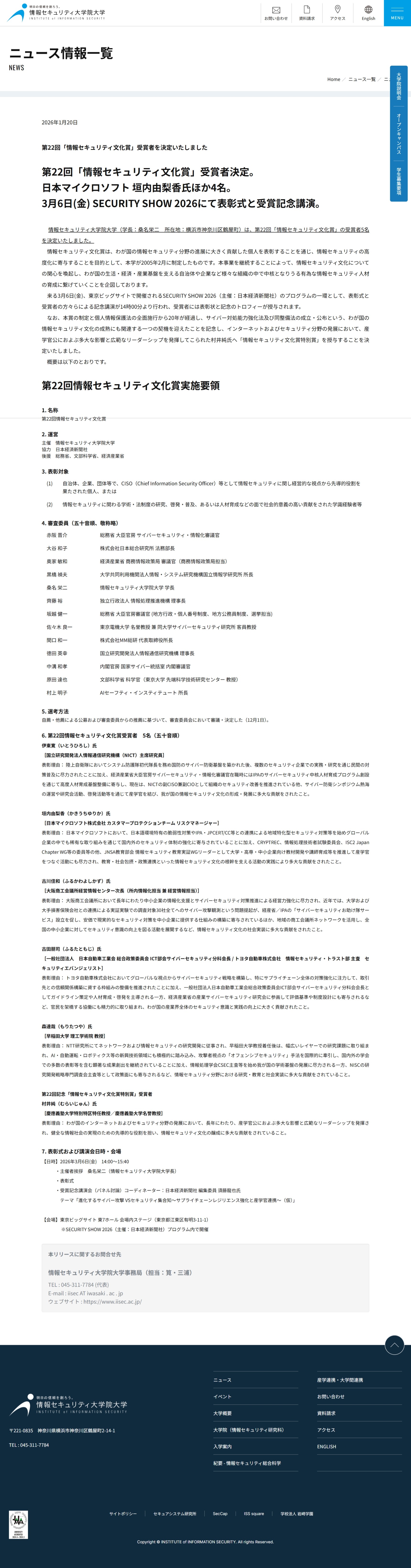 1月20日(火) 情報セキュリティ大学院大学