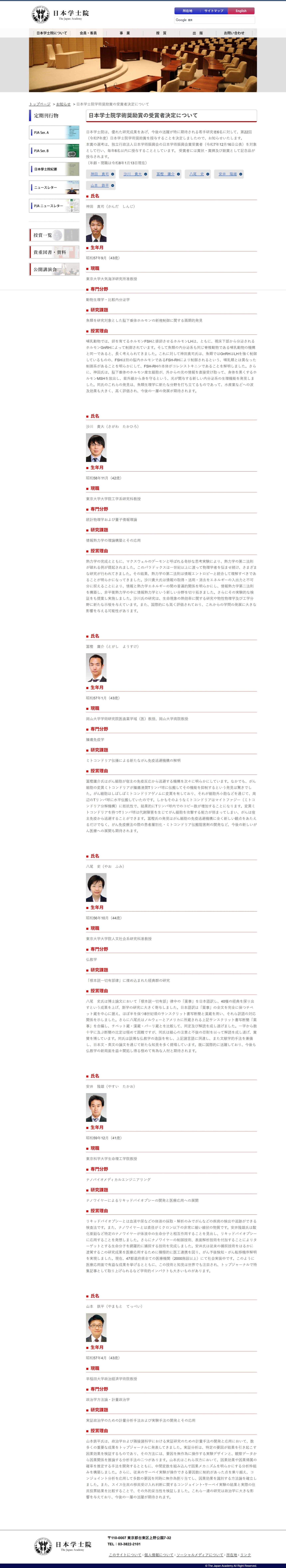 1月13日(火) 日本学士院