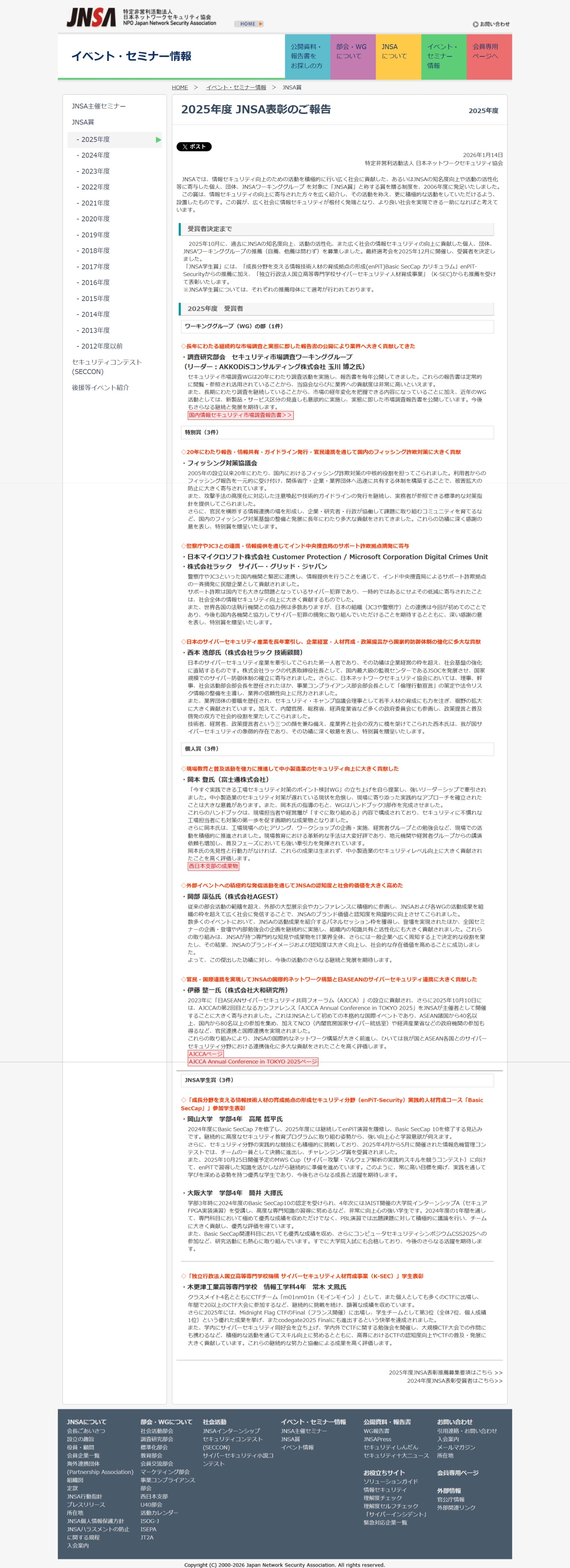 1月14日(水) 日本ネットワークセキュリティ協会(JNSA)