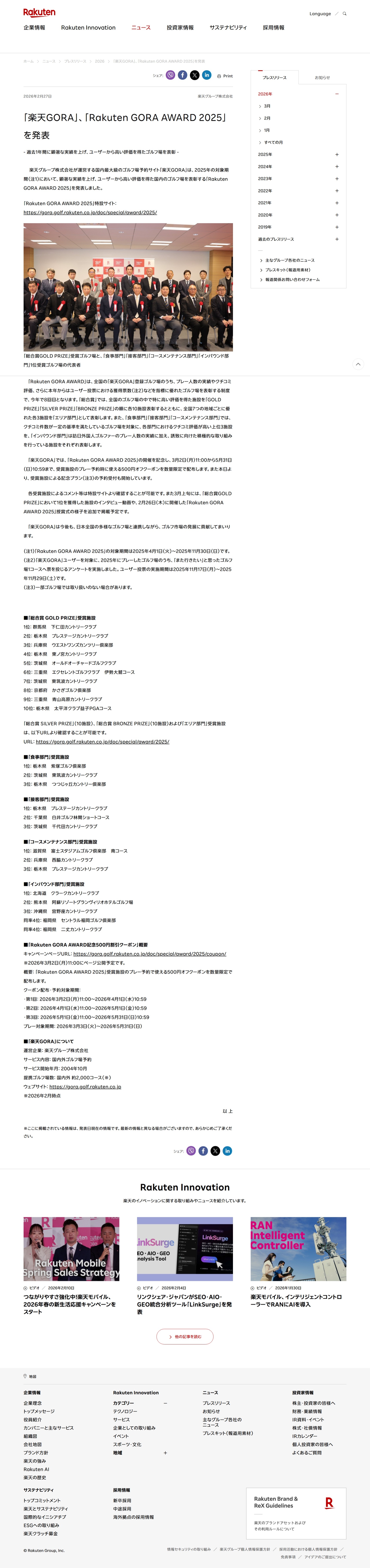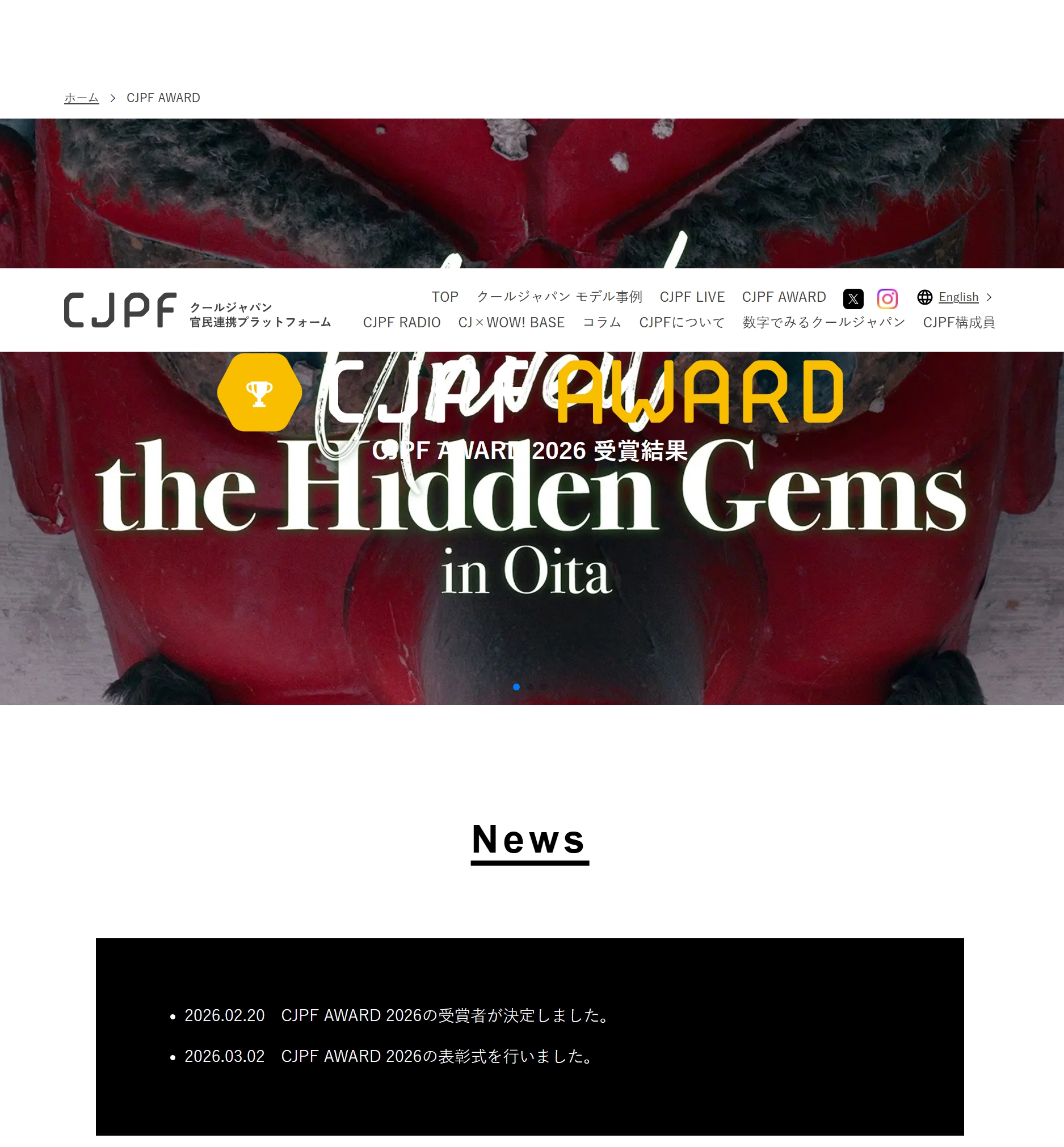 HOMEAwards 2026年2月に公表された認定、表彰結果一覧 2026年3月29日 Awards 各種認定、コンテスト、アワード、表彰等の結果が毎日多数公表されています。本ブログでもピックアップして紹介していますが、個別に紹介しきれるものではありませんので、広告宣伝目的以外で地域が限定されていないものを対象として、月単位にプレスリリース等へのリンクの一覧を掲載し、拾い集めたタイミングで随時更新していきます。※左のロゴ部分に、リリースが削除された際に備えた画面コピーや、関連する情報へのリンクを張っている場合があります。/span> CA Tech Kids(Tech Kids School)2月28日(土)2025年度全国No.1小学生プログラマー決定!小学生のためのプログラミングコンテスト「Tech Kids Grand Prix 2025」受賞者発表➔デジタルネイティブ世代の実態:小学生の生成AI利用とプログラミングの現在地 楽天グループ2月27日(金)「楽天GORA」、「Rakuten GORA AWARD 2025」を発表 | 楽天グループ株式会社 経済産業省2月27日(金)第6回アトツギ甲子園決勝大会受賞者決定 デジタルメディア協会2月26日(木)デジタル・コンテンツ・オブ・ジ・イヤー’25/第31回 AMDアワード 年間コンテンツ賞「優秀賞」10タイトル、「功労賞」、「江並直美賞(新人賞)」、「リージョナル賞」、「審査員特別賞」が決定➔2025年の最優秀デジタルコンテンツは? 第31回AMDアワード優秀賞および特別賞の顔ぶれが決定 人を大切にする経営学会2月26日(木)第16回受賞企業 / 「日本でいちばん大切にしたい会社」大賞 中小機構2月26日(木)よろず支援拠点コーディネーター表彰制度 中小企業庁長官賞 (成長支援事例・優良事例)の受賞者を発表します 新聞通信調査会2月25日(水)2025 年度ボーン・上田記念国際記者賞受賞者決定 総務省2月25日(水)令和7年度防災功労者消防庁長官表彰及び消防団等地域活動表彰の受賞団体の決定 iF Design Award2月24日(火)iF DESIGN AWARD 2026の受賞者が決定しました! 日本自動車会議所2月24日(火)自動車業界550万の働く人々と自動車ユーザーへ感謝を伝える 『クルマ・文化・社会・パートナーシップ大賞』(CSP大賞) 第5回(2025年度)受賞者を決定 翔泳社2月24日(火)ITエンジニア本大賞2026 技術書・ビジネス書部門大賞が決定! | 翔泳社➔ITエンジニア本大賞2026発表:現場が選んだ「今読むべき」技術書・ビジネス書とその背景 住友生命保険2月24日(火)文部科学省・こども家庭庁後援 住友生命子育て支援事業 第19回「未来を強くする子育てプロジェクト」受賞者決定 日本コロムビア2月22日(日)AIクリエイティブコンテスト 「COLOTEK(コロテック)」大盛況のうちに閉幕 ~次回は賞金総額1,000万円のAIアニメコンテストを開催~ | 日本コロムビアグループ株式会社 東京都2月20日(金)令和7年度東京都スポーツ推進モデル企業10社を表彰 CJPF|クールジャパン官民連携プラットフォーム –2月20日(金)「CJPFアワード2025」グランプリ / 準グランプリ / 優秀賞 / ⼤阪・関⻄万博特別賞 計18取組が受賞 | 内閣府知的財産戦略推進事務局のプレスリリース 日本グラフィックデザイン協会(JAGDA)2月20日(金)年鑑『Graphic Design in Japan 2026』選考会開催 第28回亀倉雄策賞・JAGDA賞2026・JAGDA新人賞2026決定|NEWS 数学オリンピック財団2月20日(金)2026年 第24回日本ジュニア数学オリンピック(JJMO)受賞者 数学オリンピック財団2月20日(金)2026年 第36回日本数学オリンピック(JMO)受賞者 eiicon2月20日(金)【 愛知県 × eiicon 】ビジネスプランコンテスト『AICHI NEXT UNICORN LEAGUE』最終審査会 賞金総額1,000万円 受賞者が決定! ナターシャ(ナタリー)2月18日(水)「タテ読みマンガアワード 2025」結果発表!INI・佐野雄大賞、ぱーてぃーちゃん賞も(コメントあり) – コミックナタリー 東京都2月17日(火)第3回「伝わる広報大賞」受賞作品を決定|2月|都庁総合ホームページ 松尾芸能振興財団2月17日(火)第47回松尾芸能賞 東京カメラ部2月16日(月)審査結果発表|OM SYSTEM フォトコンテスト2025 -その感動は人生を変える- 白水社2月16日(月)第70回岸田國士戯曲賞発表 – 白水社 総務省2月16日(月)DIGITAL POSITIVE ACTION AWARDS 2026 環境省2月16日(月)第7回「ESGファイナンス・アワード・ジャパン」受賞者の決定について | 報道発表資料 ソニー音楽財団2月13日(金)第 24 回 齋藤秀雄メモリアル基⾦賞 受賞者決定 ⼭澤 慧(チェロ)/ 熊倉 優(指揮) 楽天グループ(ラクマ)2月13日(金)「楽天ラクマ」、リユース事業者と個人ユーザーから優秀ショップを表彰する「楽天ラクマショップ・オブ・ザ・イヤー 2025」を発表 | 楽天グループ株式会社 日本環境協会(こどもエコクラブ)2月13日(金)2025年度「全国エコ活コンクール 」受賞クラブ大発表! 経済産業省2月13日(金)令和 7年度「わたしたちのくらしとエネルギー」かべ新聞コンテストの受賞者を決定しました 映画演劇文化協会2月13日(金)第45回 「藤本真澄映画賞」受賞者決定のお知らせ ソニー音楽財団2月13日(金)第24回 齋藤秀雄メモリアル基⾦賞 受賞者決定 中谷財団2月12日(木)第 18 回 中谷賞 受賞者 決定第18回中谷賞大賞は、東京大学 大学院工学系研究科 化学⽣命工学専攻 教