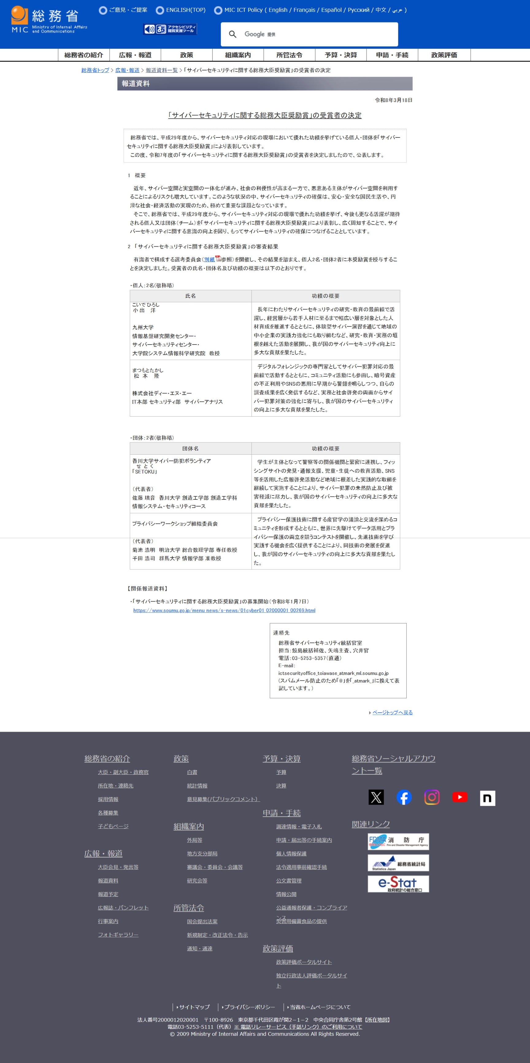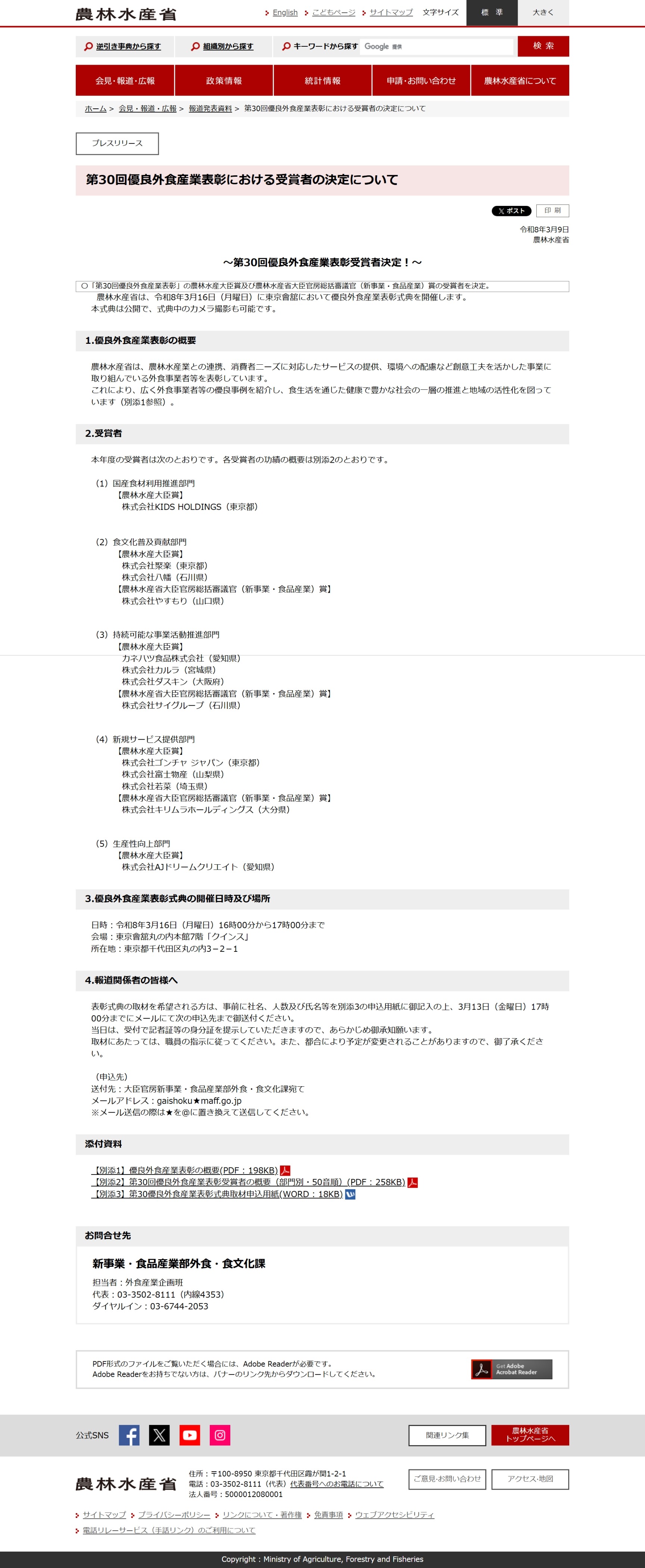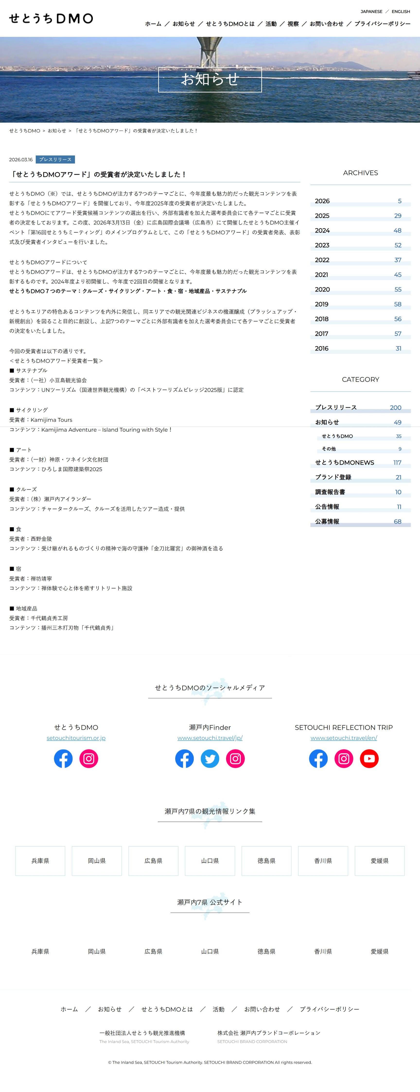 各種認定、コンテスト、アワード、表彰等の結果が毎日多数公表されています。