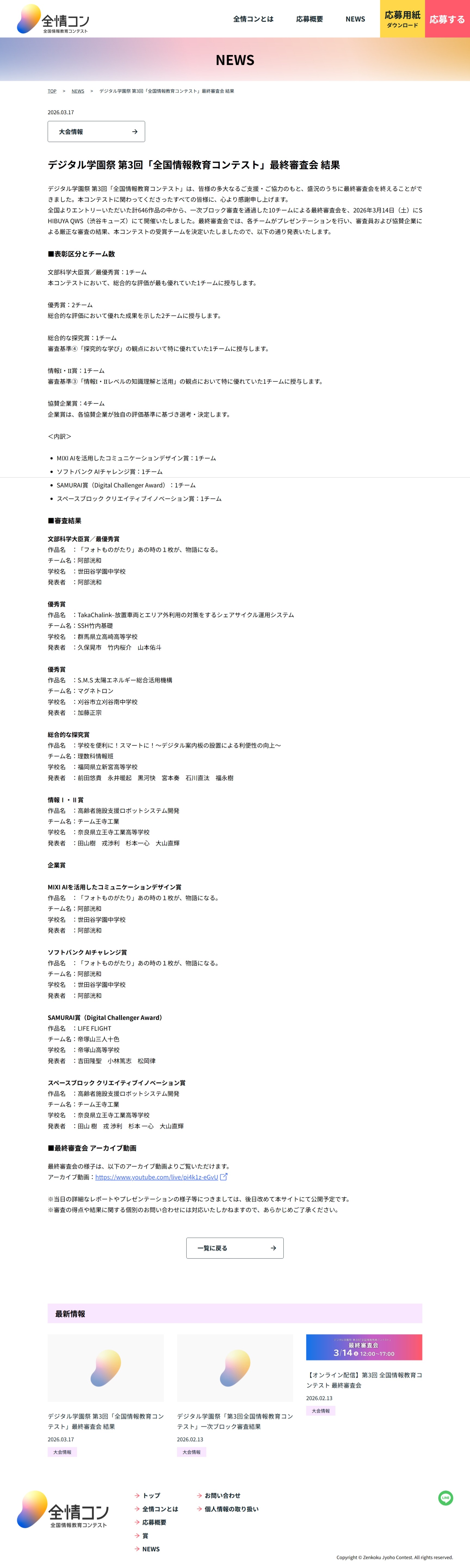 3月17日(火)646作品から選ばれたトップ10が渋谷に集結 全情コン2026の受賞作品が決定