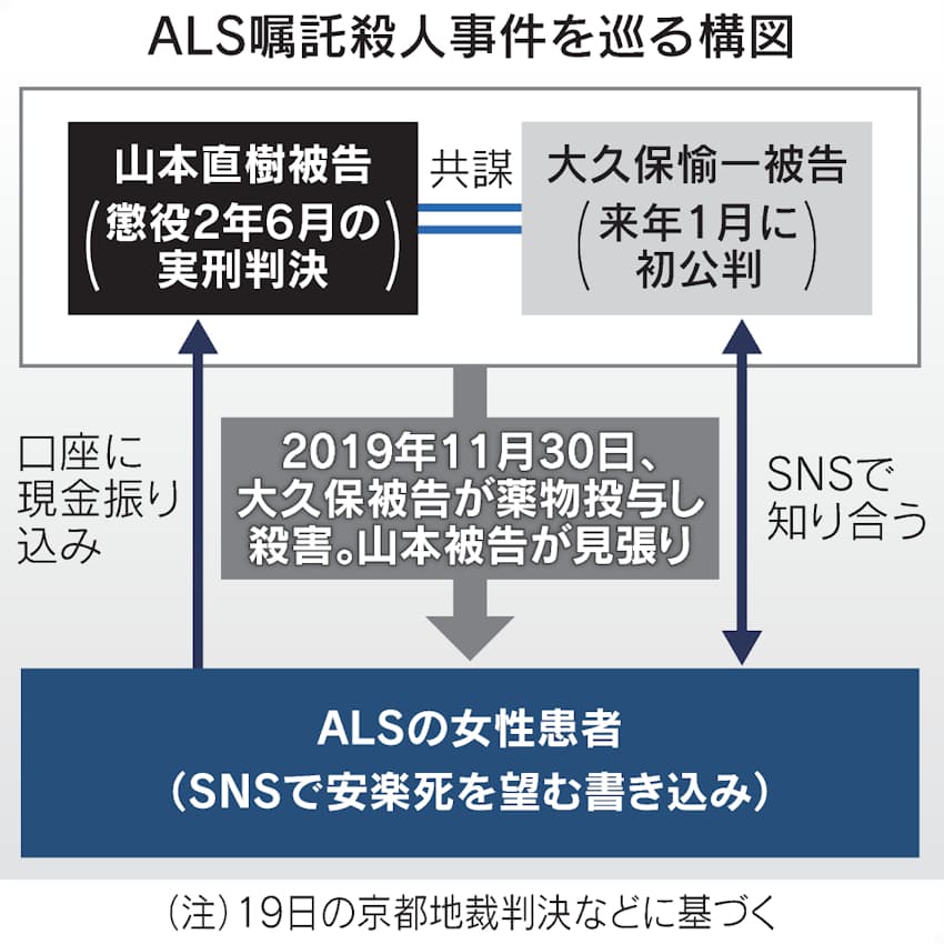 関連情報 ALS患者嘱託殺人、元医師に懲役2年6月 京都地裁判決 – 日本経済新聞【上図も日経新聞】