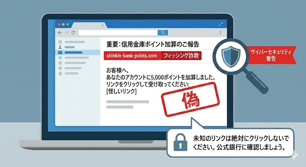 このメールは開かないようにし、間違って開いても接続先URLのリンクをクリックしないようにしてください。