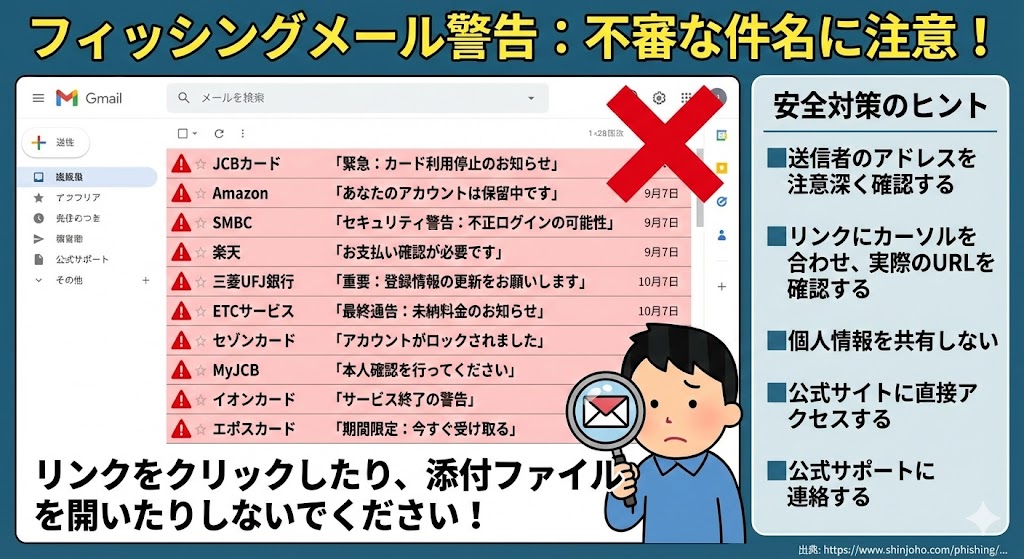 毎日大量に配信されているフィッシング詐欺メールを観測し、その正体をお知らせします。