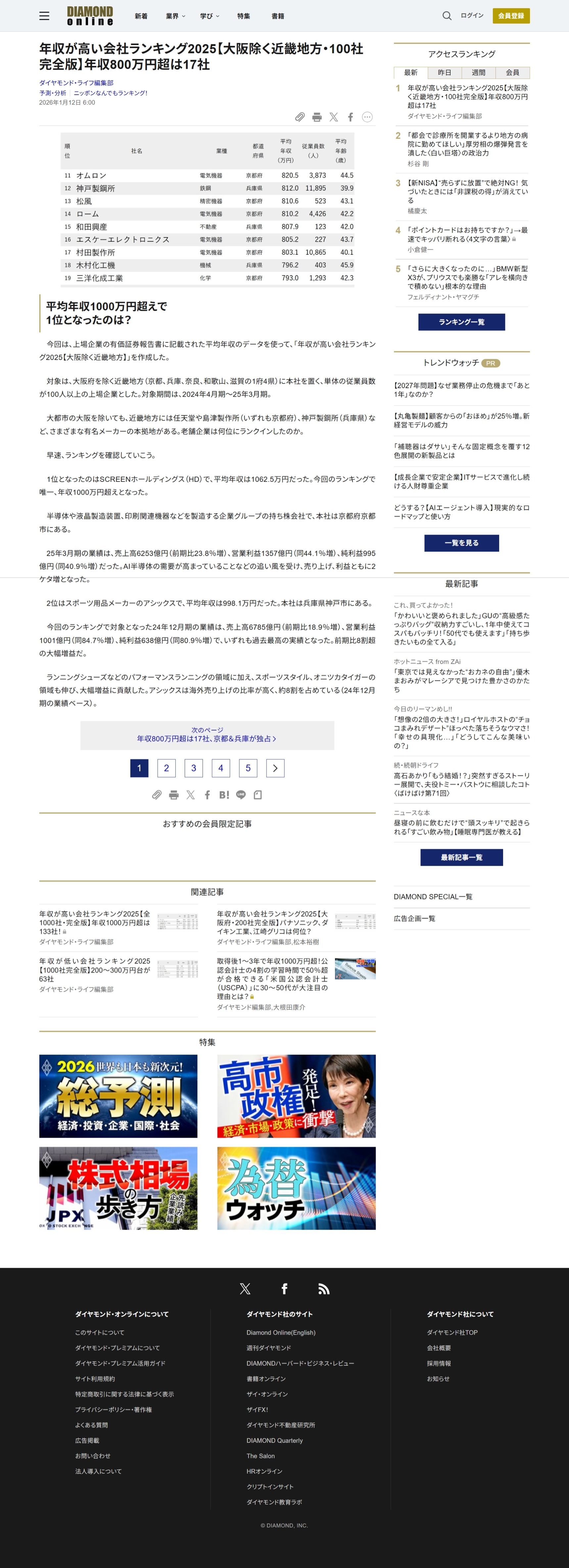 年収が高い会社ランキング2025【大阪除く近畿地方・100社完全版】年収800万円超は17社 | ニッポンなんでもランキング! | ダイヤモンド・オンライン