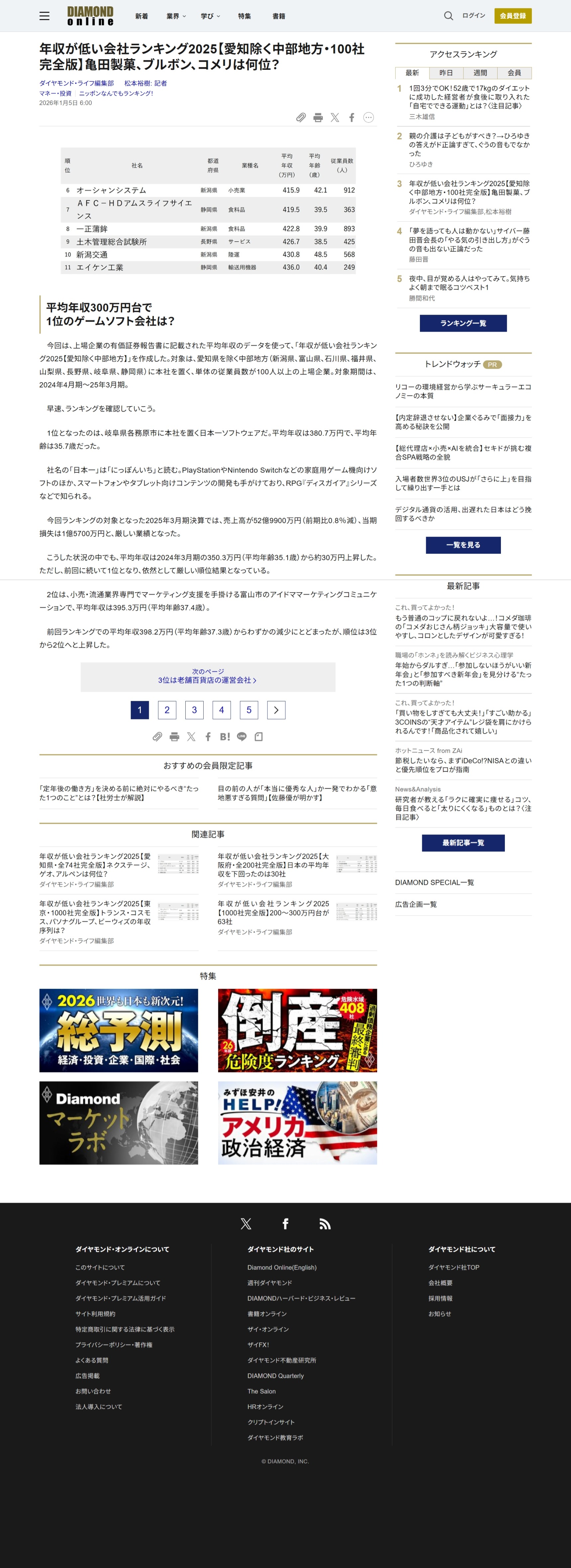 年収が低い会社ランキング2025【愛知除く中部地方・100社完全版】亀田製菓、ブルボン、コメリは何位? | ニッポンなんでもランキング! | ダイヤモンド・オンライン