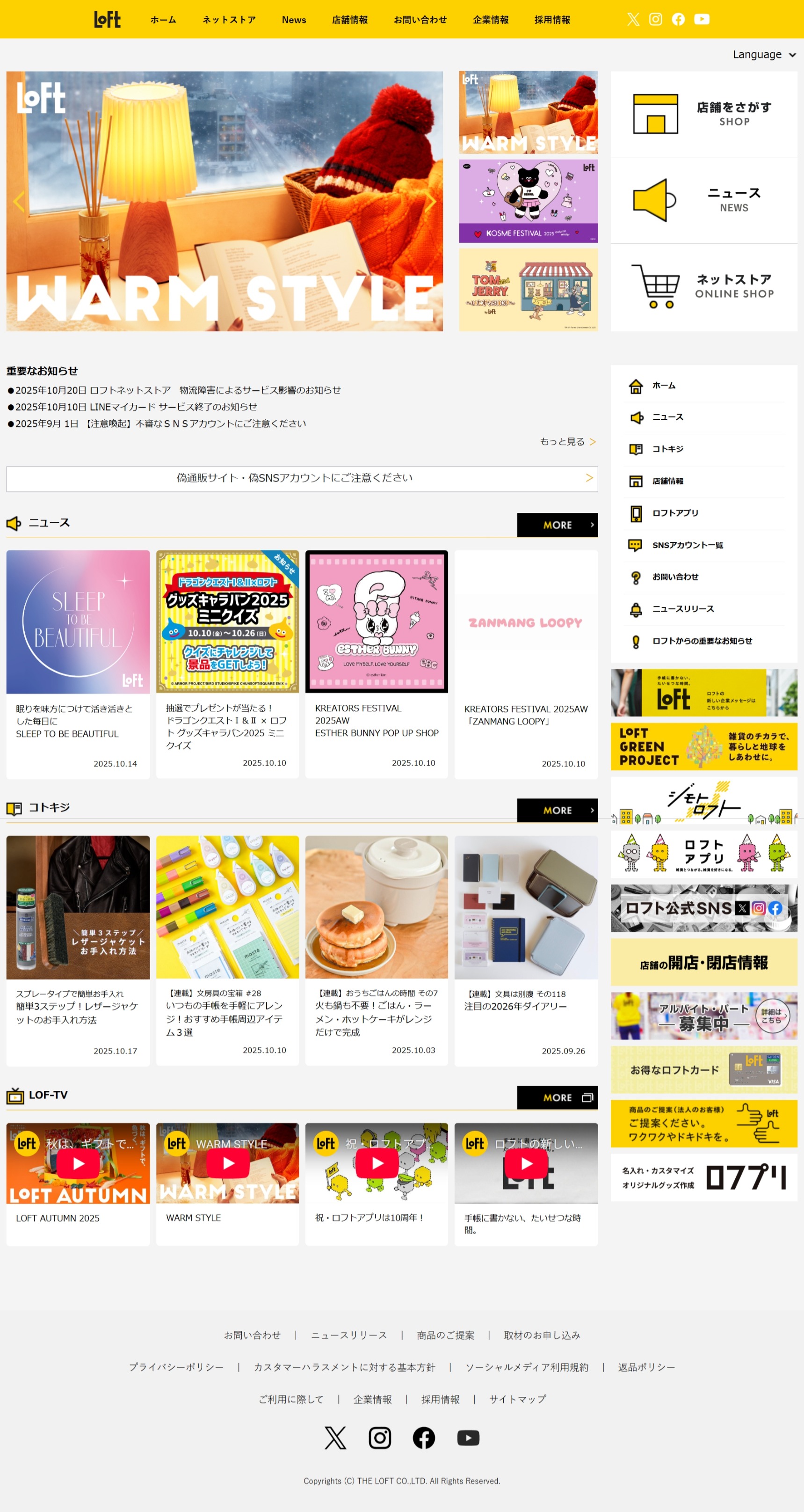 重要なお知らせ|ロフトネットストア 物流障害によるサービス影響のお知らせ概要:株式会社ロフトは2025年10月20日、公式ウェブサイトにて、ロフトネットストアにおいて物流障害が発生し、現在すべての商品が「在庫切れ」表示となり、購入手続きが停止されていると発表しました。サービス再開の時期は未定であり、同社は利用者に対し不便をかけていることを謝罪するとともに、理解と協力を求めています。問い合わせについては、専用ページからカテゴリーを選択して連絡するよう案内されています。