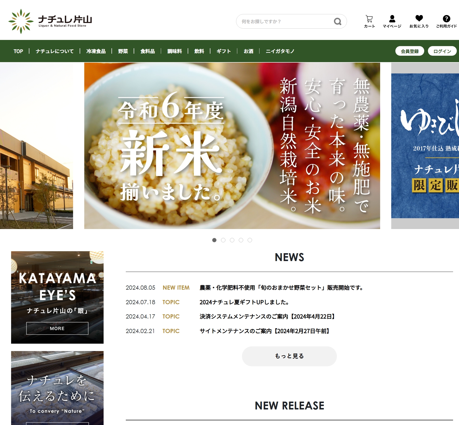 実店舗である大型複合店舗「ナチュレ片山」(新潟県)と同様に、食の安全や健康、環境への影響などを考慮した独自の基準で、全国から厳選したこだわりの商品を取り扱っています。