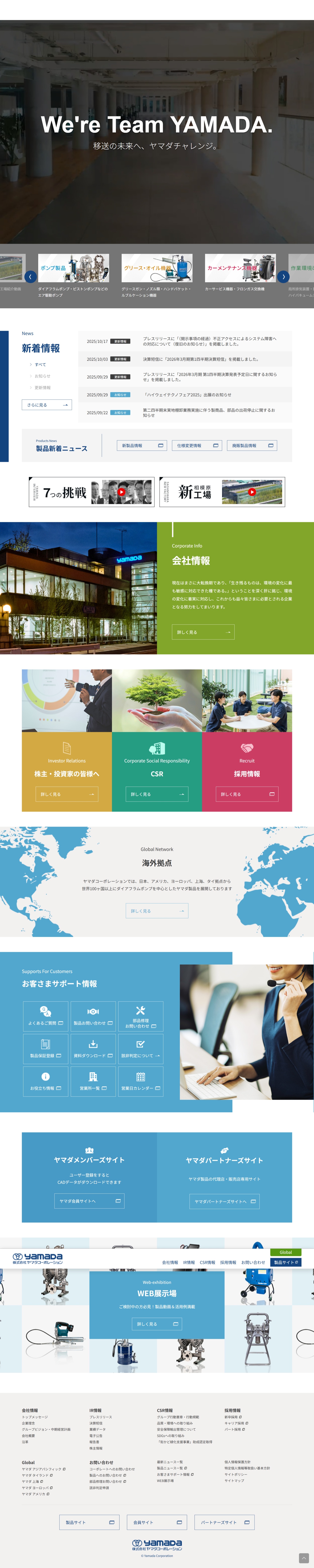 ヤマダコーポレーションは、100年以上の歴史を持つ老舗の産業用ポンプメーカーです。流体移送技術を核に、幅広い産業分野で活躍する製品を開発・製造・販売しています。
