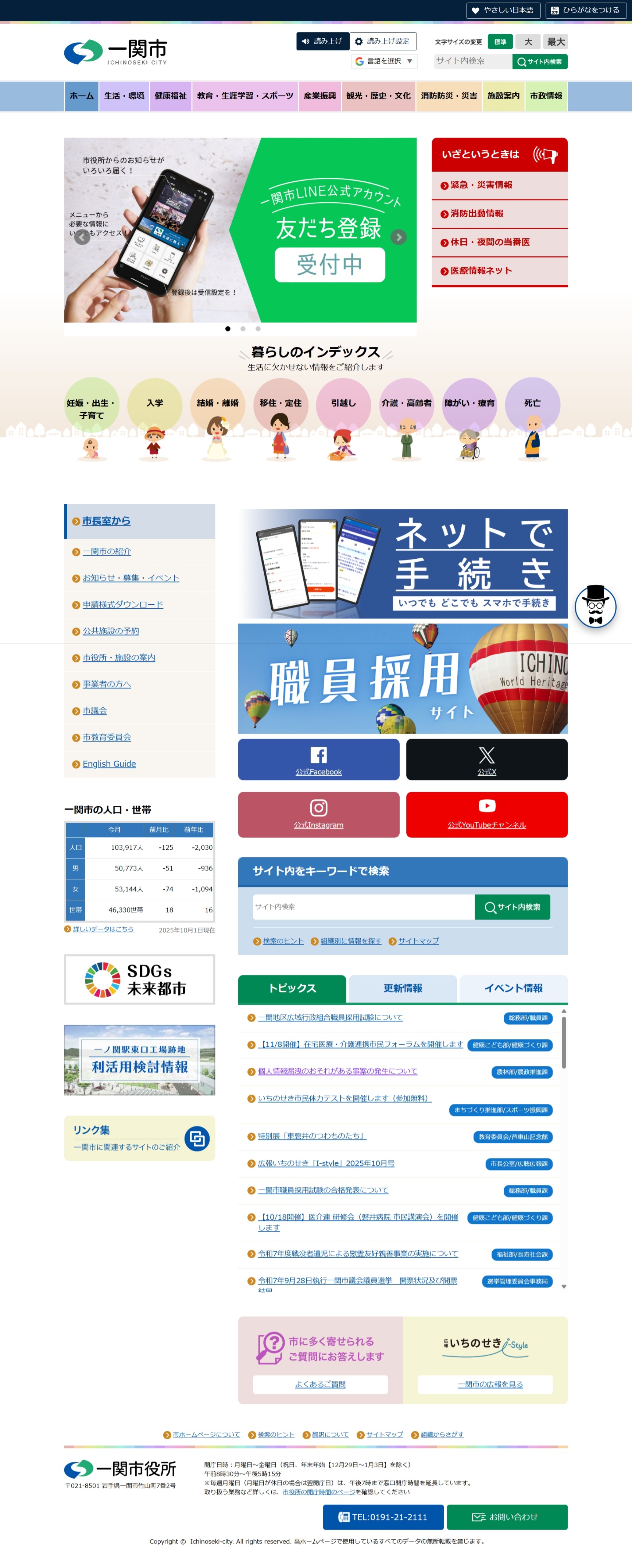 ■作業ミスがあった自治体の公式サイト: 一関市