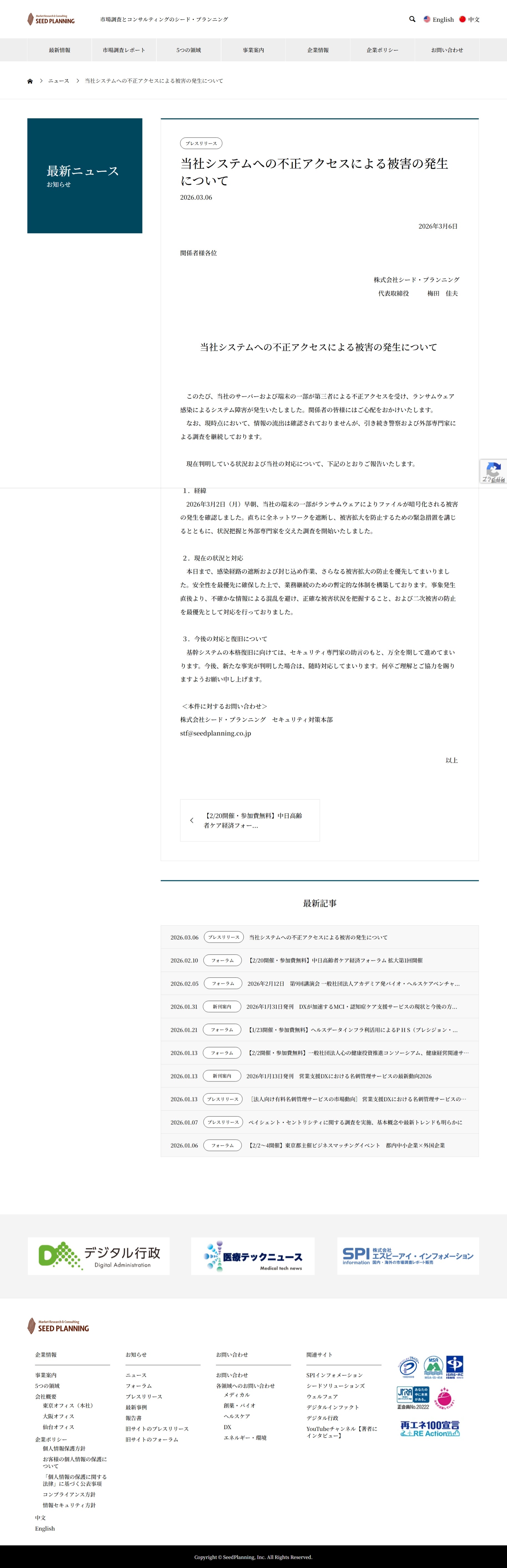 東京都および民間調査会社の株式会社シード・プランニングは2026年3月6日、都の調査研究事業に関連してサイバー攻撃が発生し、大規模な個人情報漏えいの可能性があることを明らかにしました。