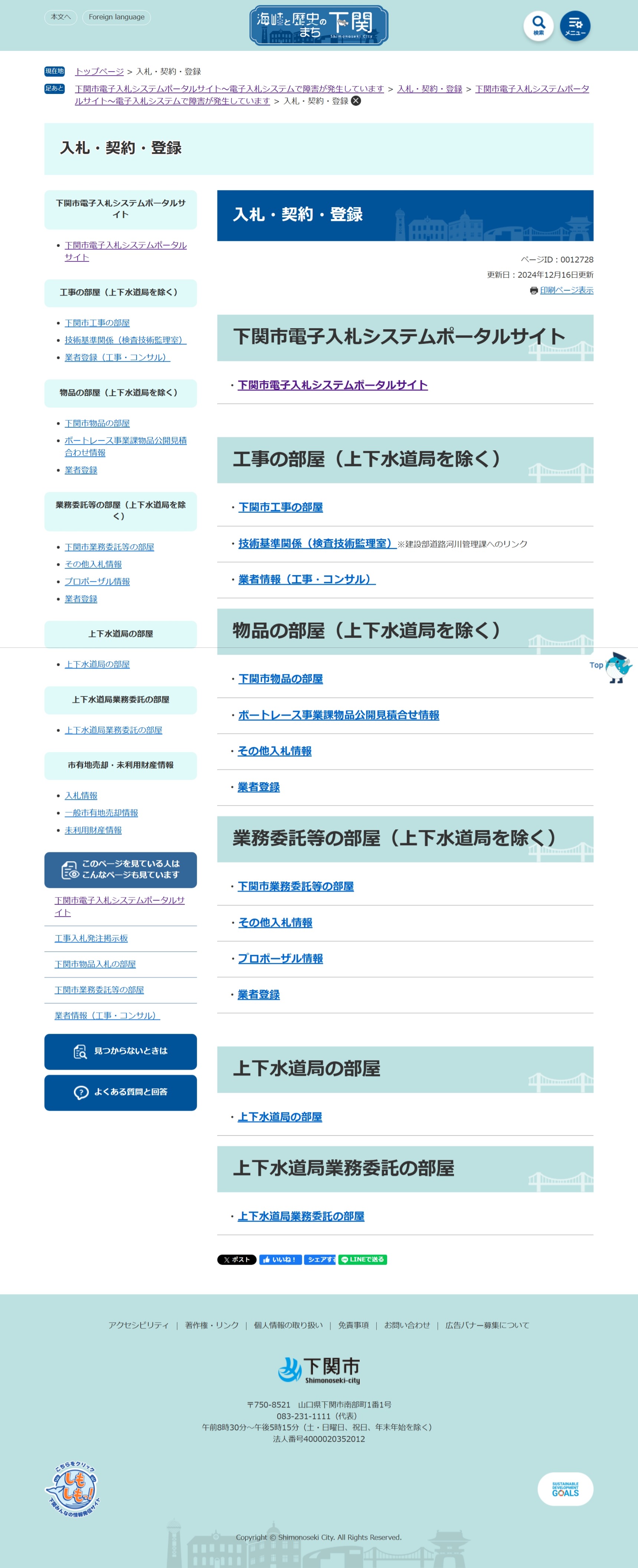 下関市電子入札システムポータルサイト~電子入札システムで発生した障害は回復しました