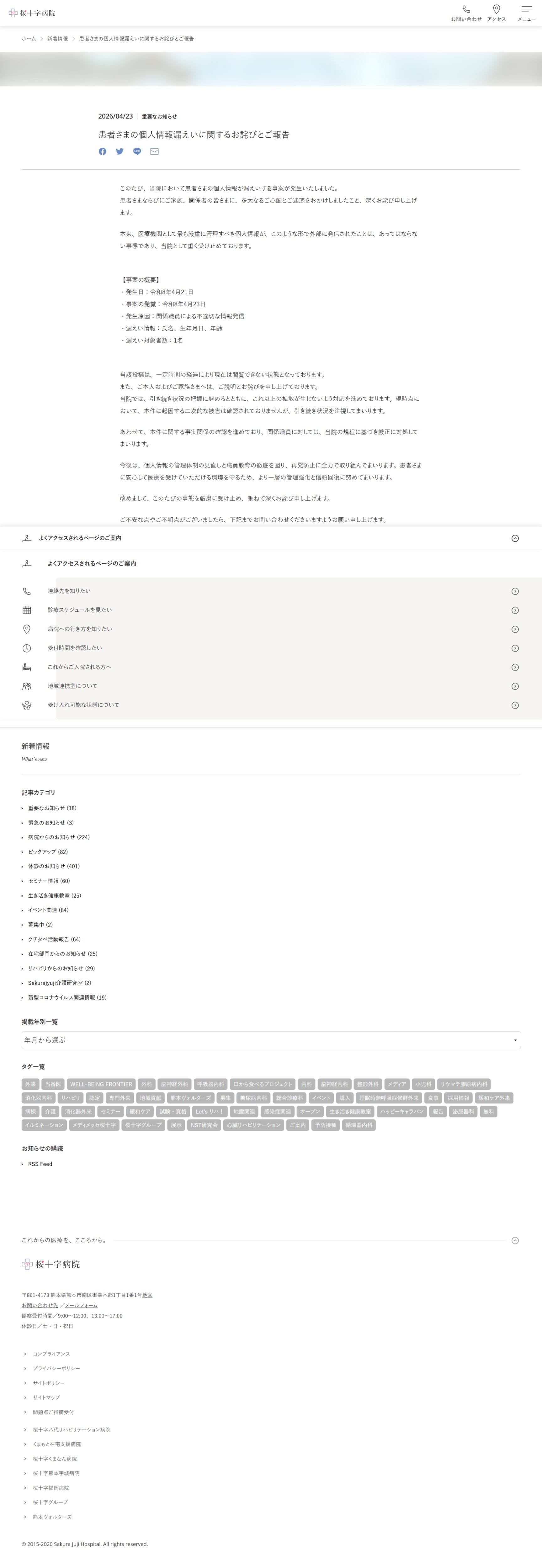 患者さまの個人情報漏えいに関するお詫びとご報告