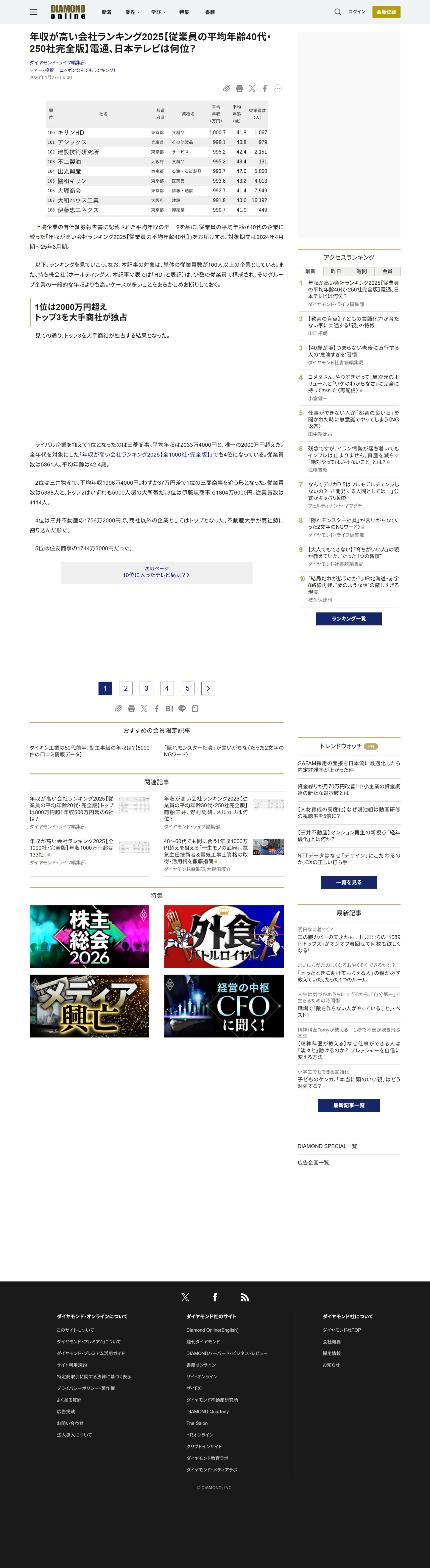 年収が高い会社ランキング2025【従業員の平均年齢40代・250社完全版】電通、日本テレビは何位?