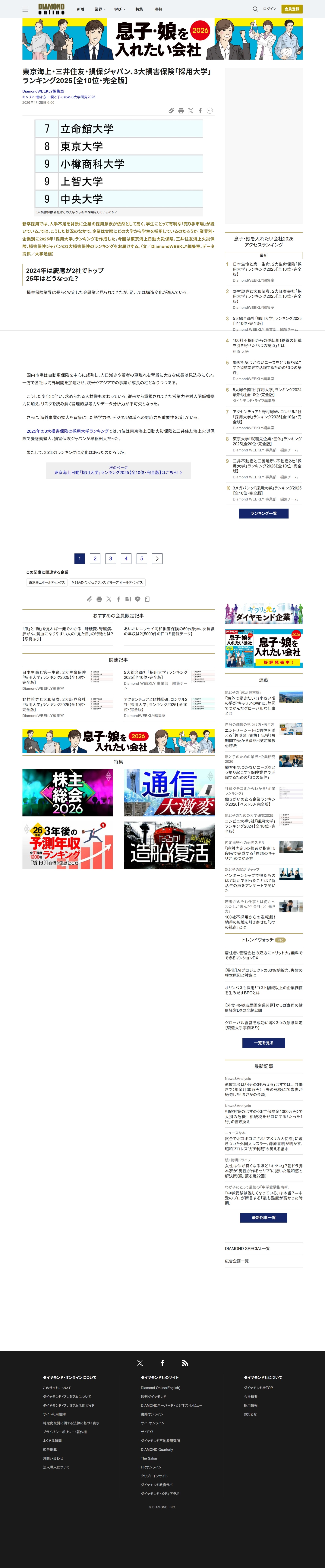 東京海上・三井住友・損保ジャパン、3大損害保険「採用大学」ランキング2025【全10位・完全版】