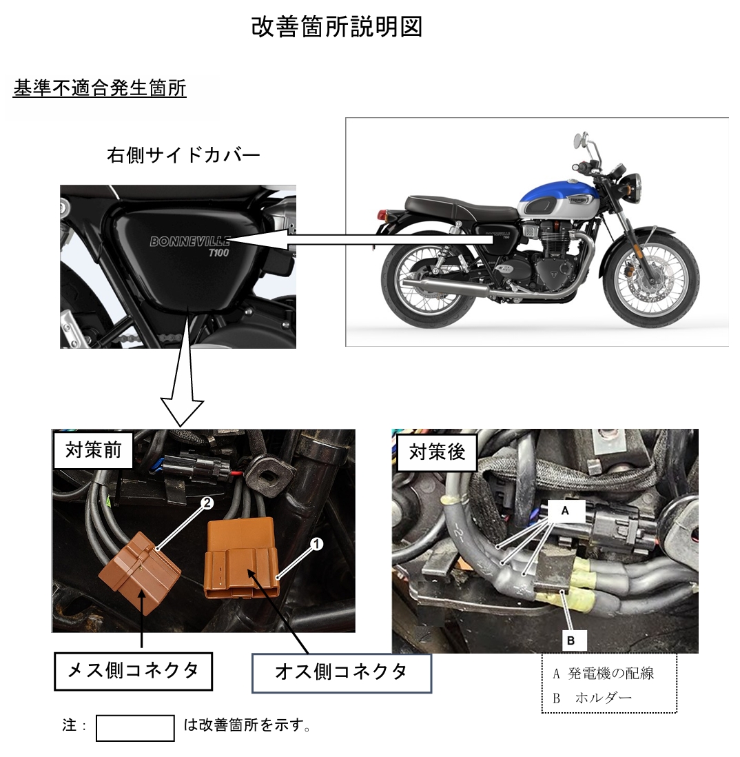 トライアンフ「ボンネビルT100」「ストリートツイン」「ストリートスクランブラー」 「ボンネビルT120」「スピードツイン 900」「スクランブラー900」電気装置(コネクタ端子)