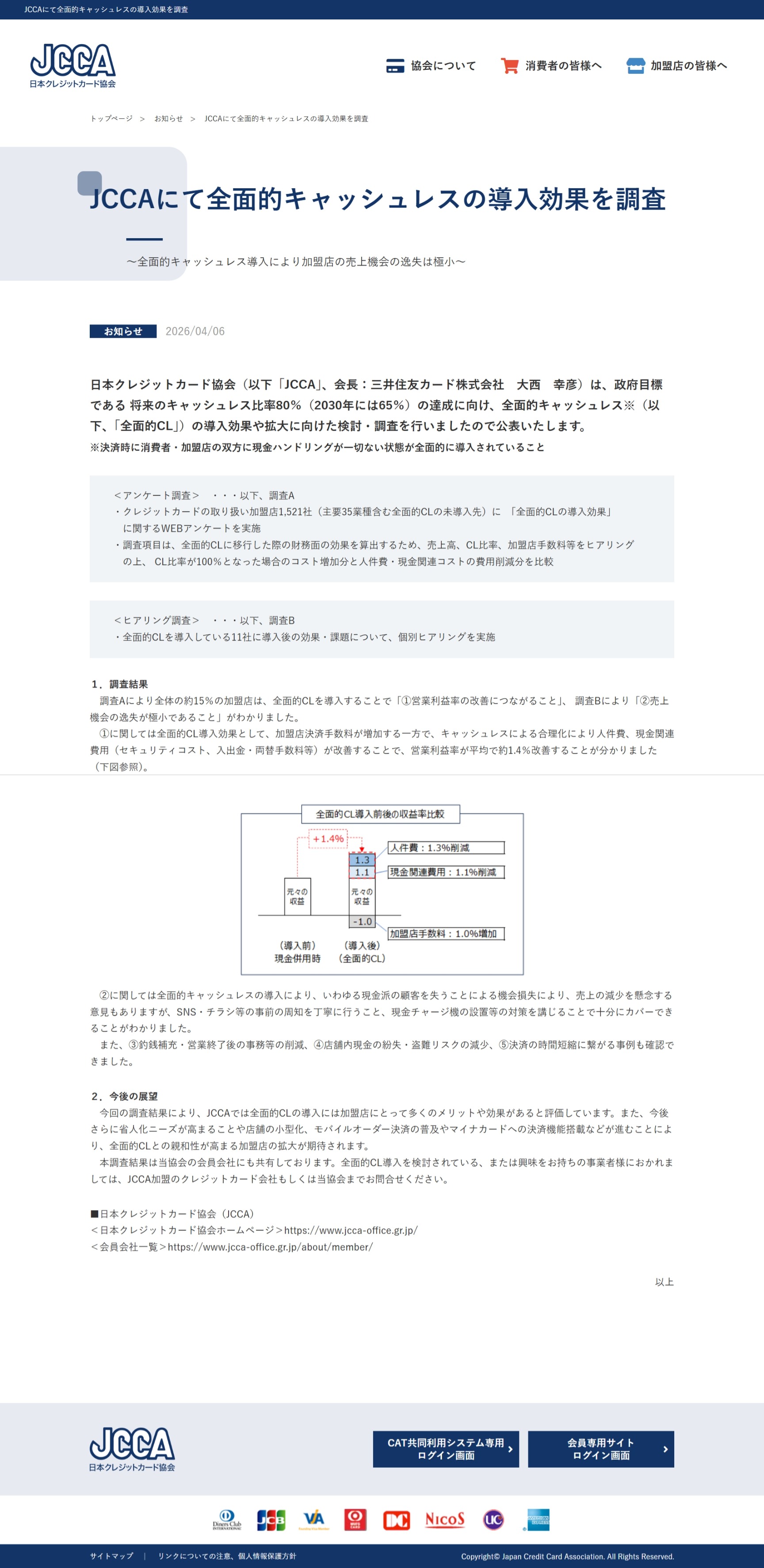 JCCAにて全面的キャッシュレスの導入効果を調査