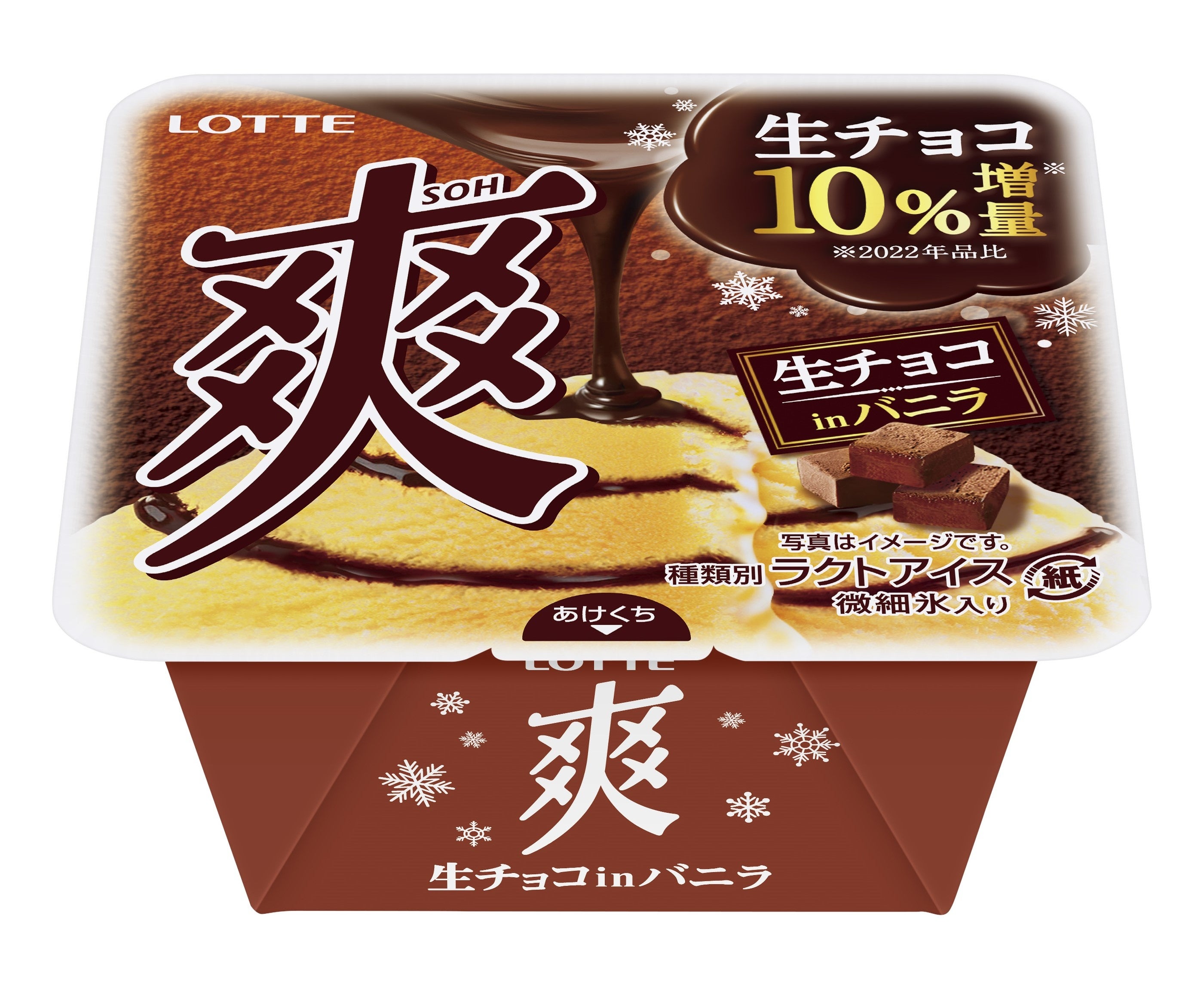 2023.10.02 発売 3年連続3回目!ふんわりとしたくちどけの良い食感!今年は生チョコソースを10%増量して登場!『爽 生チョコinバニラ』を発売いたします。 10月2日発売