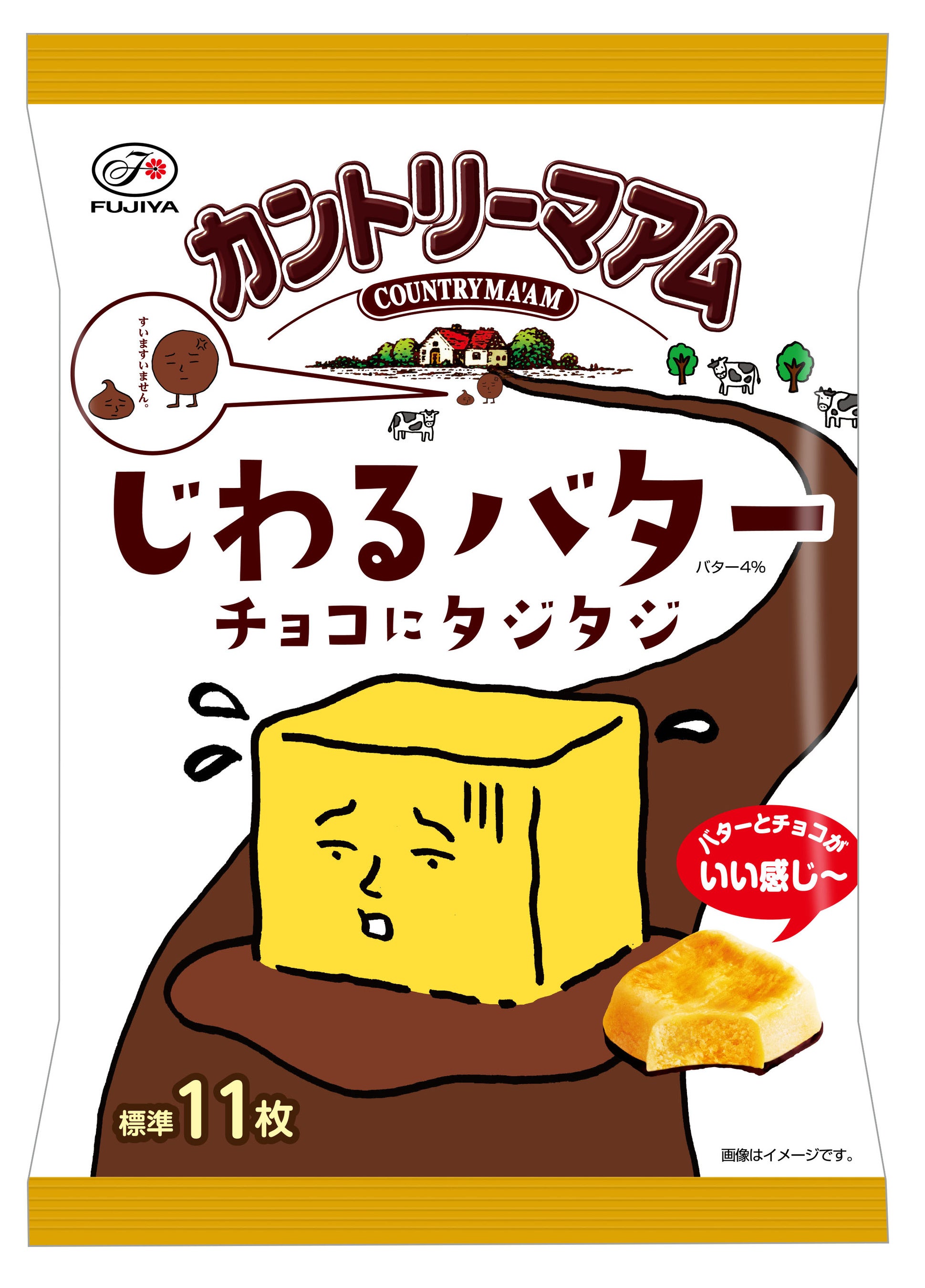 2023年09月26日 【ニュースリリース】バター×チョコの背徳感たっぷりカントリーマアム。「カントリーマアムじわるバターチョコにタジタジミドルパック」発売について発表しました。