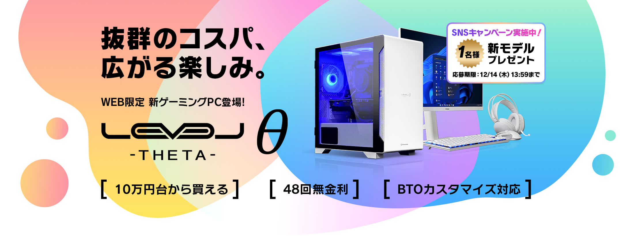 2023年12月7日【パソコン工房】 iiyama PCより、コスパ抜群の新ゲーミングPCブランド「LEVELθ(レベル シータ)」を発売