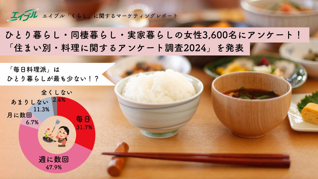 \冷凍食品は「日常食化&速食化」!ひとり暮らしが購入する割合の高い冷凍食品は意外なアレ!?/ひとり暮らし・同棲暮らし・実家暮らしの女性3,600名にアンケート!「住まい別・料理に関するアンケート調査2024」を発表