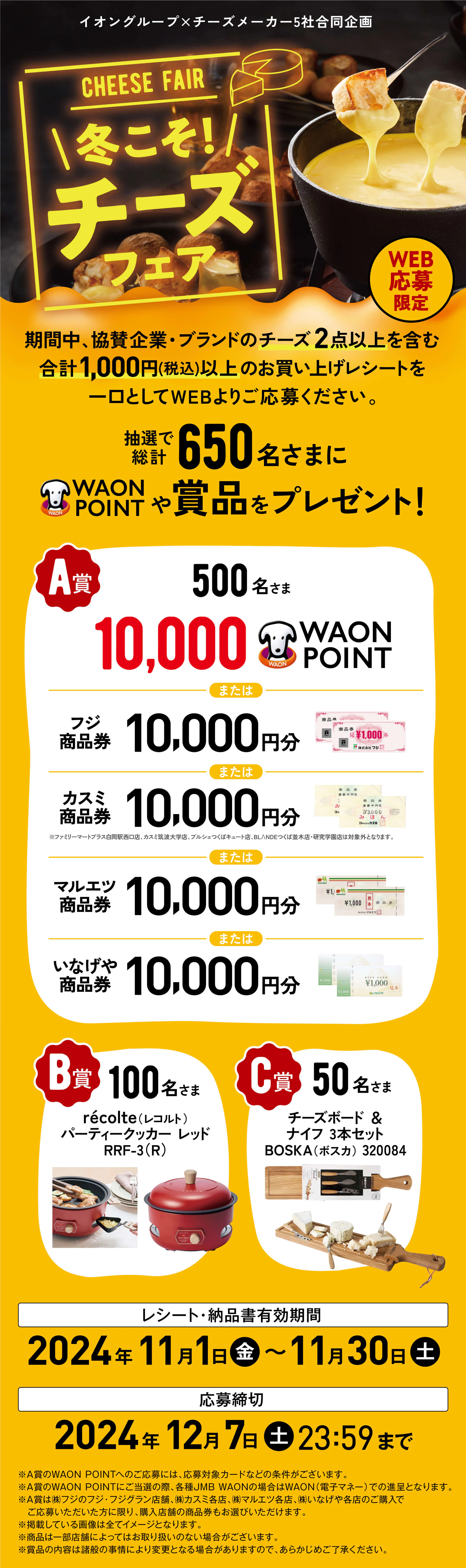 期間中、協賛企業・ブランドのチーズを買ってWEBで応募!!