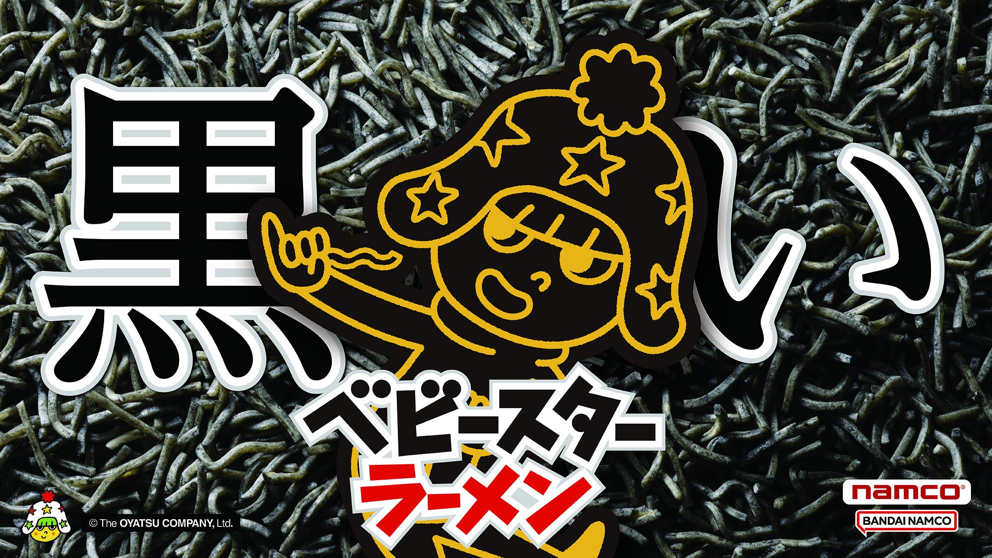 アミューズメント専用商品初!(※) ベビースターが真っ黒に! 「ベビースターラーメン 鶏炭火焼 柚子胡椒風味」が11月14日(木)よりナムコ限定で登場!