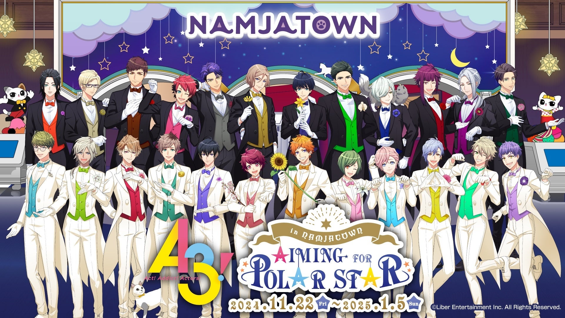 株式会社バンダイナムコアミューズメントが運営する屋内型テーマパーク「NAMJATOWN(ナンジャタウン)」(東京・池袋)は、イケメン役者育成ゲーム『A3!』とのコラボレーションイベント「A3! in NAMJATOWN AIMING FOR POLAR STAR (ポラリスを目指して)」を2024年11月22日(金)から2025年1月5日(日)まで開催します。