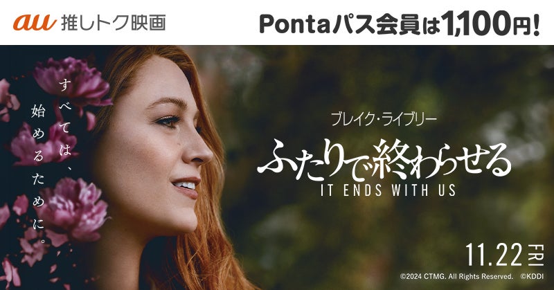 今回au推しトク映画に仲間入りする作品は、全世界で約1,000万部を記録した大ベストセラー小説の映画化、全米興収1億4,800万ドルを突破した、2024年11月22日(金)公開の『ふたりで終わらせる/IT ENDS WITH US』。原作は、全米No.1恋愛小説家として知られるコリーン・フーヴァーの自身の体験をもとに書かれた恋愛小説「イット・エンズ・ウィズ・アス ふたりで終わらせる」です。小説と同様に、映画では身近に起こり得る“愛する人からの暴力”という問題を背景に、逆境や困難に立ち向かう一人の女性の強さと再生を描いています。