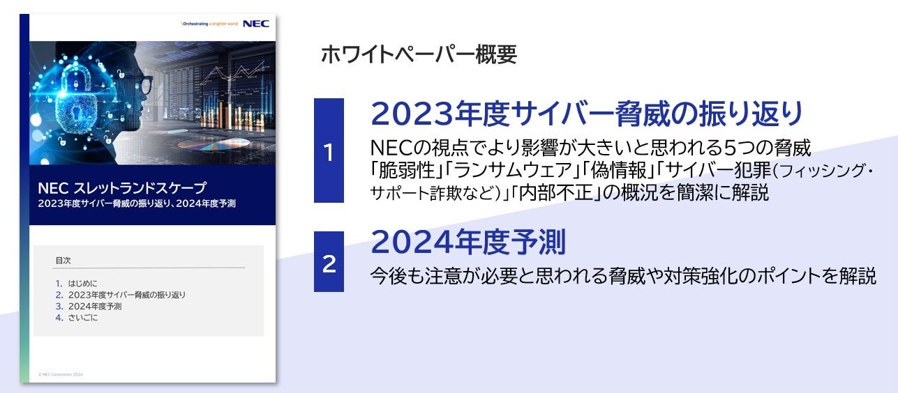 2024年5月24日 NEC、「スレットランドスケープ 2023年度サイバー脅威の振り返り、2024年度予測」に関するホワイトペーパーを公開