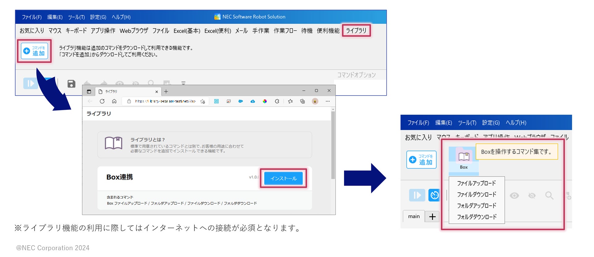 2024年5月24日 NEC、RPA ソフトウェアにおいて Web からのダウンロードで機能拡張できるライブラリ機能を追加した新バージョンを販売開始