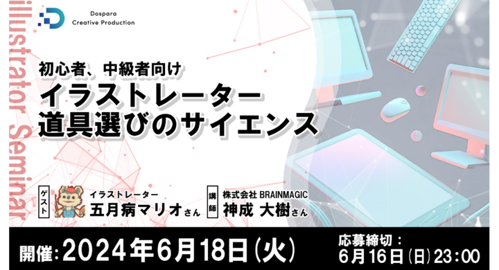 2024年6月10日 【ドスパラ】初中級者向け イラストレーター道具選びのサイエンス 人気イラストレーター 五月病マリオさん登壇 6月18日(火)20時より開催 参加者募集中
