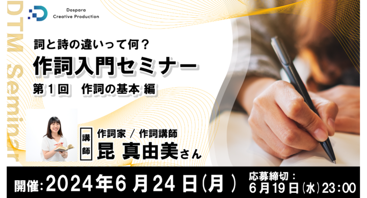 2024年6月10日 【ドスパラ】詞と詩の違いから学ぶ『作詞入門セミナー』作詞家 昆真由美氏が登壇 6月24日(月) 20時より開催 参加者募集中