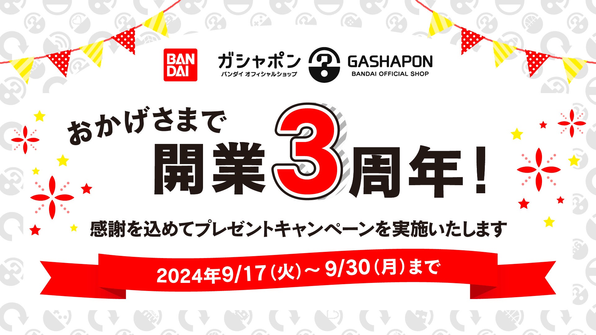 2024年9月17日 バンダイナムコアミューズメントのカプセルトイ専門店 『ガシャポンバンダイオフィシャルショップ』 オープン3周年記念キャンペーンを開催!!