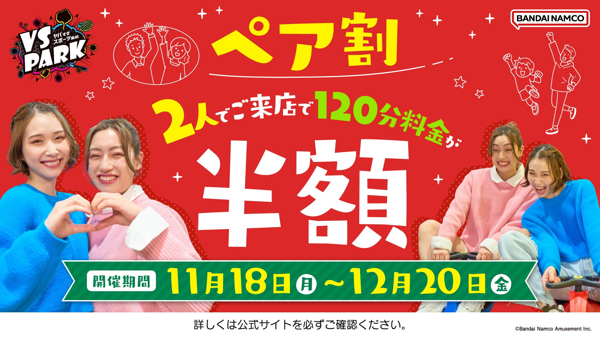 2人で来店すると半額!とってもお得な「ペア割」 全国の『VS PARK』にて11月18日(月)よりキャンペーン開催!