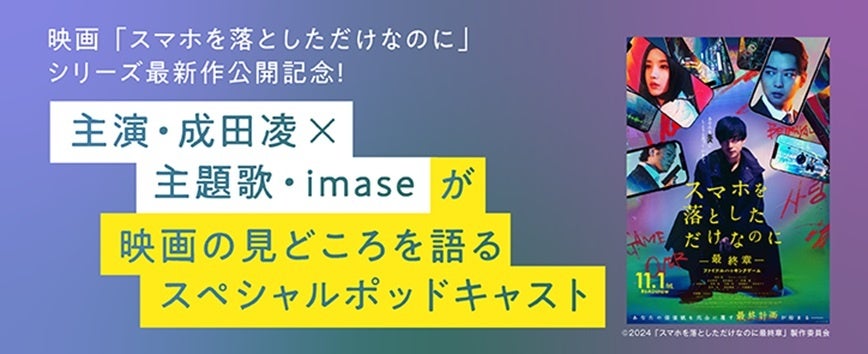 KDDI 【Pontaパス会員限定】映画『スマホを落としただけなのに ~最終章~ ファイナルハッキングゲーム』公開記念!主演・成田凌×主題歌・imaseのスペシャルポッドキャストを配信開始!