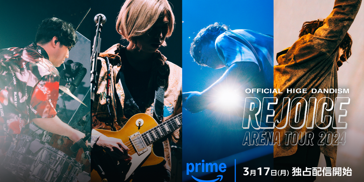 Prime Videoは、Official髭男dismが今秋に開催した全国アリーナツアー『Official髭男dism Arena Tour 2024 – Rejoice -』における、11月13日(水)のKアリーナ横浜公演を、140以上の国と地域で独占配信いたします。Official髭男dismの公演の配信は、Amazonプライム特典対象作品です。プライム会員の皆様は、お急ぎ便やお届け日時指定便などの迅速で便利な配送特典を追加料金なしで無制限に利用できる他、その他さまざまなショッピング特典やエンターテインメントをお楽しみいただけます。