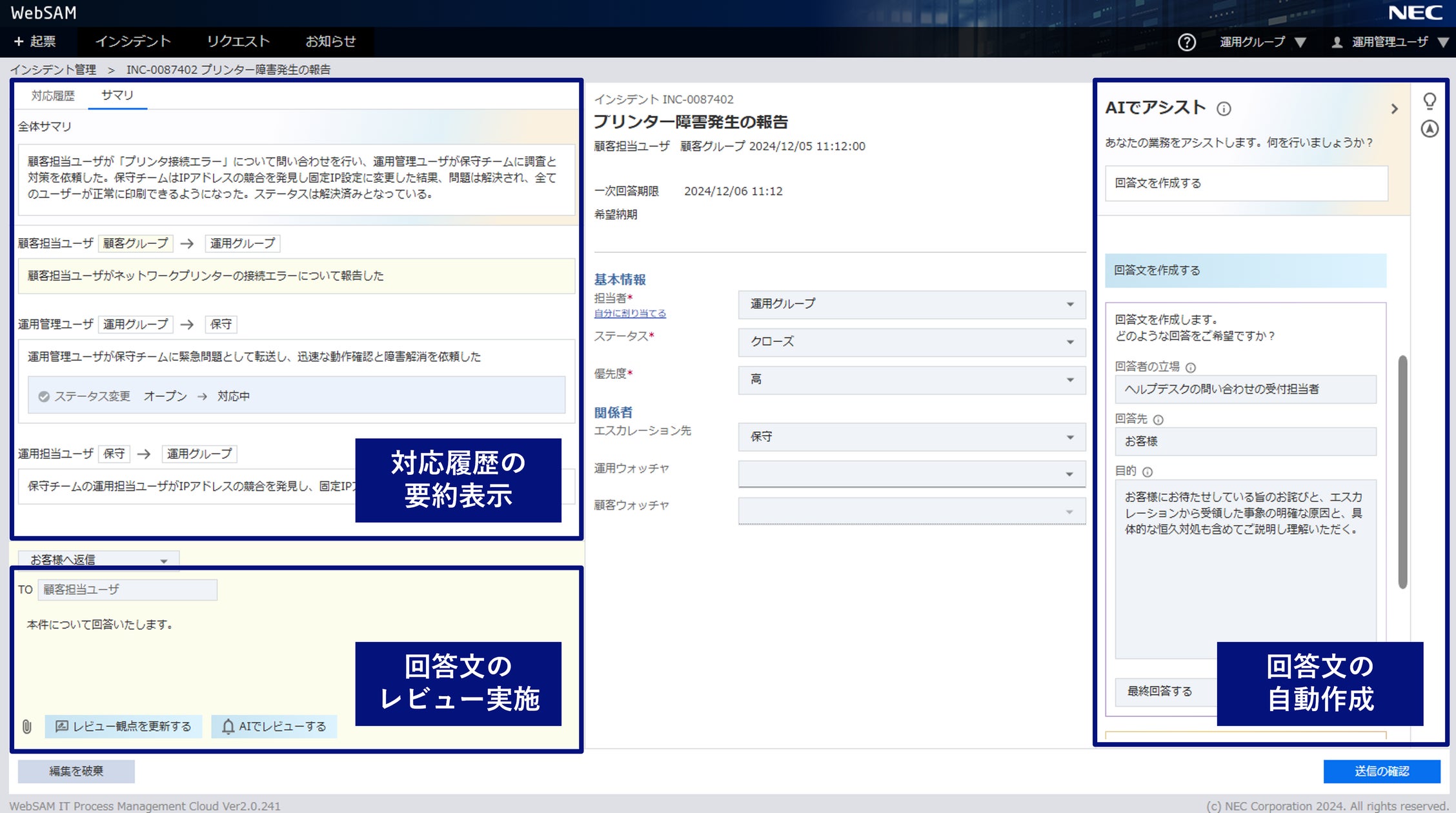 NEC、ITサービスマネジメントツール「WebSAM IT Process Management クラウド V2」に生成AI連携オプションを追加